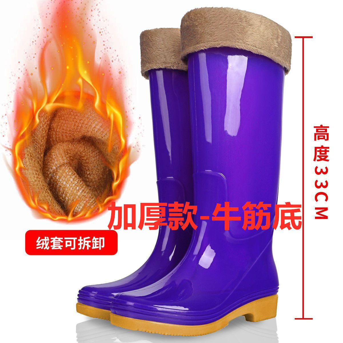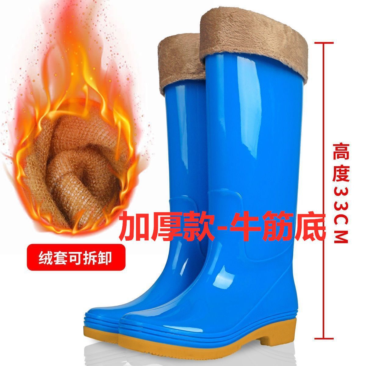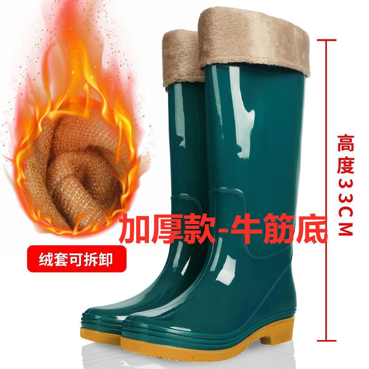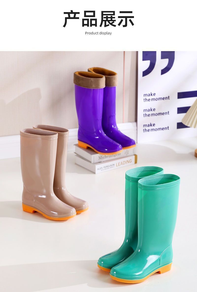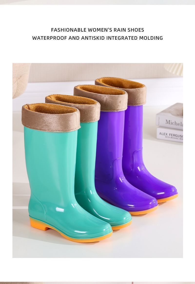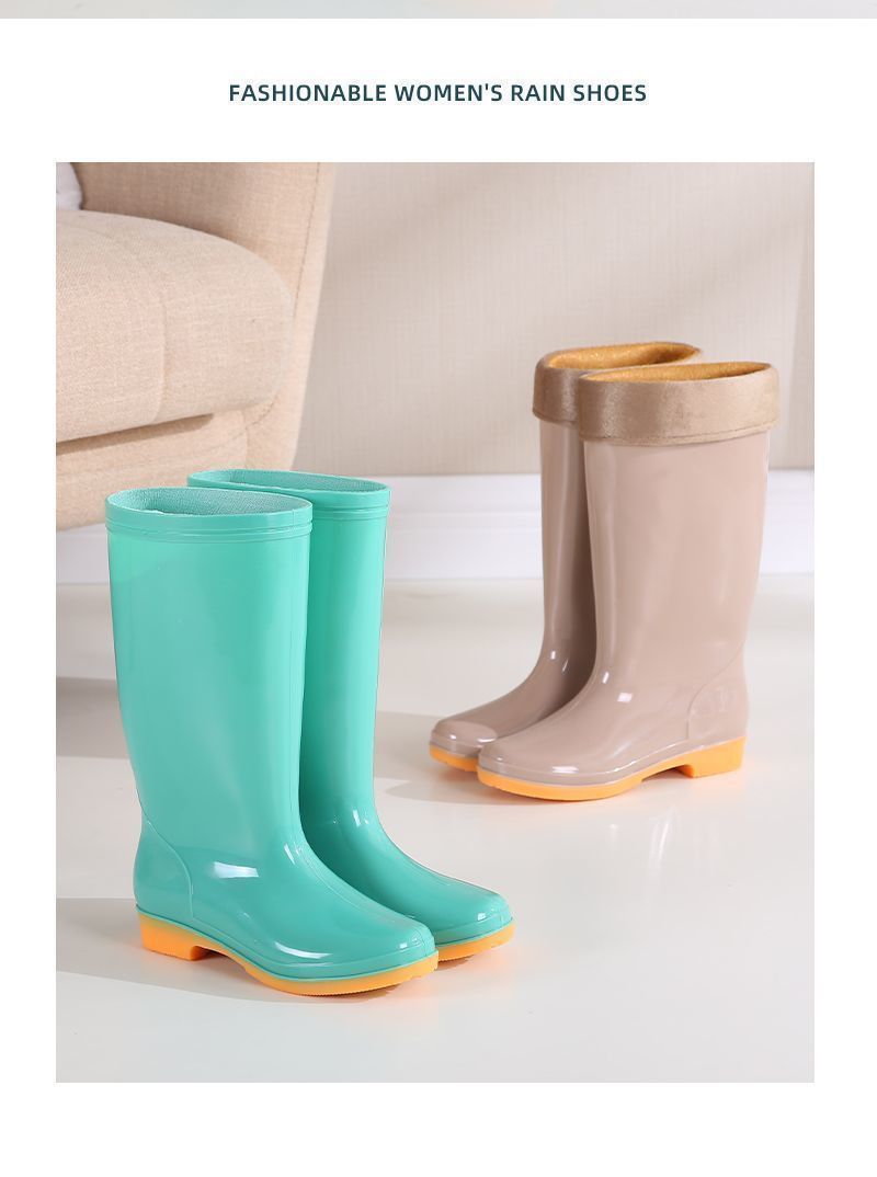 하이탑 쇠고기 힘줄 플러스 벨벳 코튼 레인부츠, 레인부츠, 방수신발, 고무신, 덧신, 워터부츠, 여성성인 주방 겨울여름