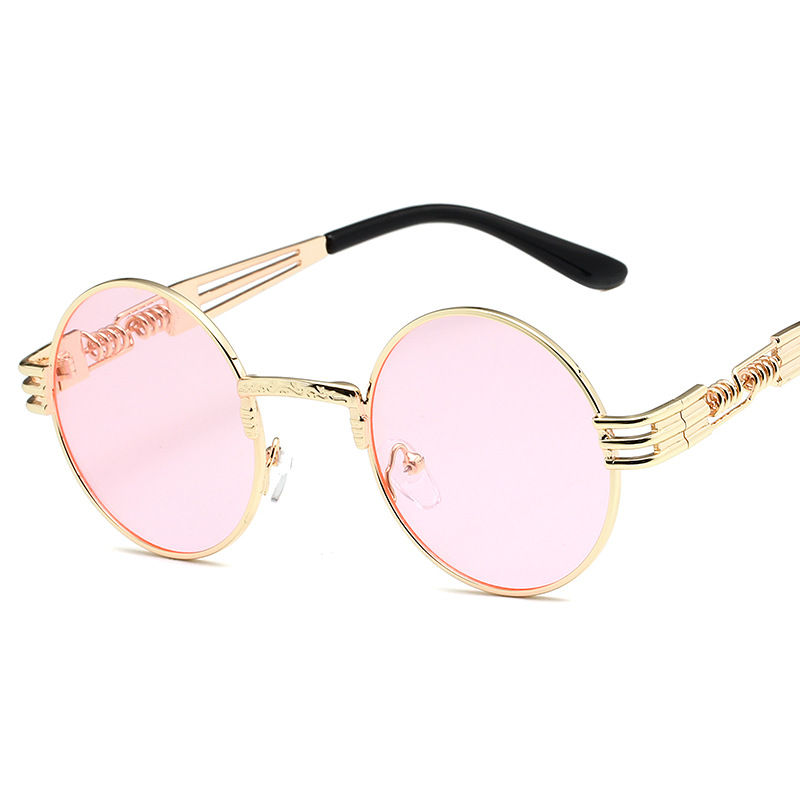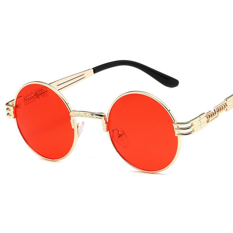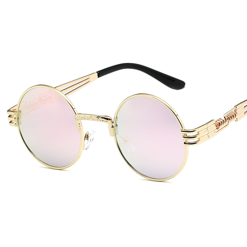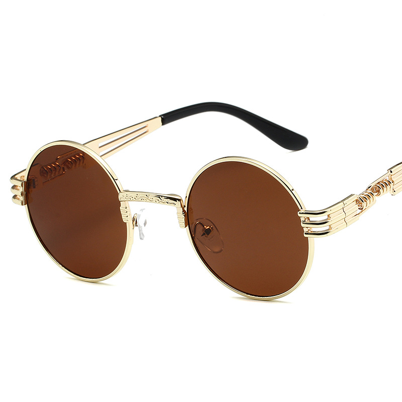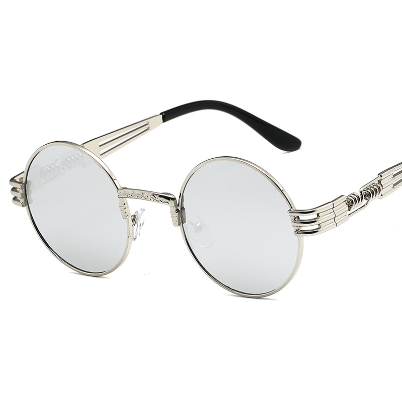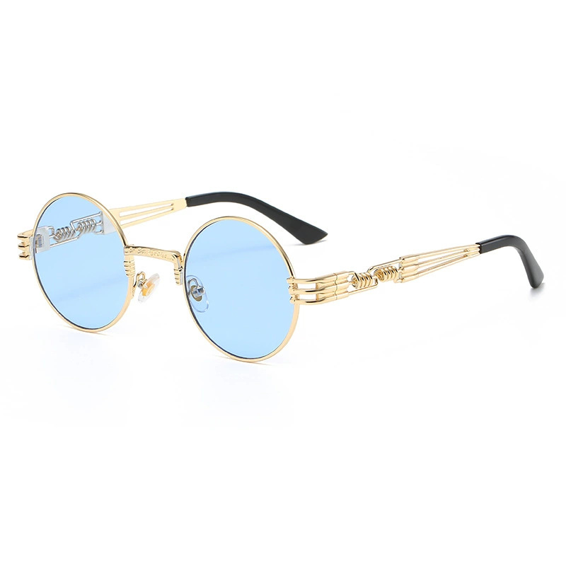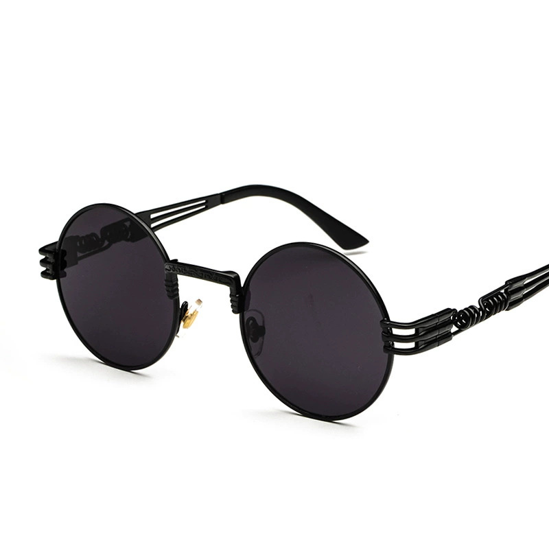 유럽과 미국의 선글라스 8010 복고풍 라운드 프레임 스팀펑크 스타일 선글라스 남성용 트렌디 메탈 스프링 레그 선글라스스토어 가기