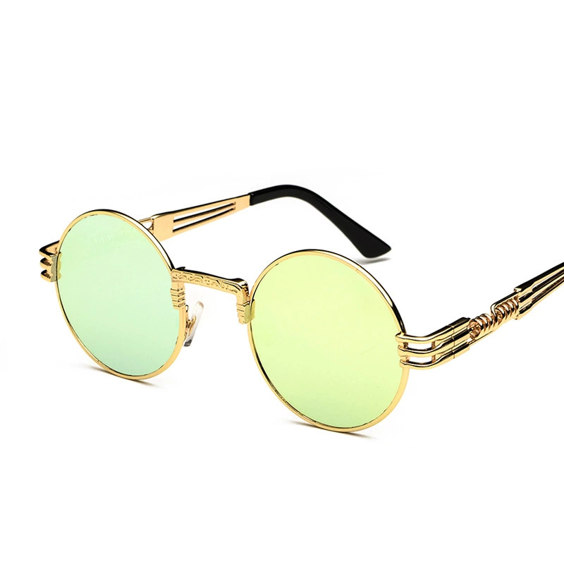 유럽과 미국의 선글라스 8010 복고풍 라운드 프레임 스팀펑크 스타일 선글라스 남성용 트렌디 메탈 스프링 레그 선글라스