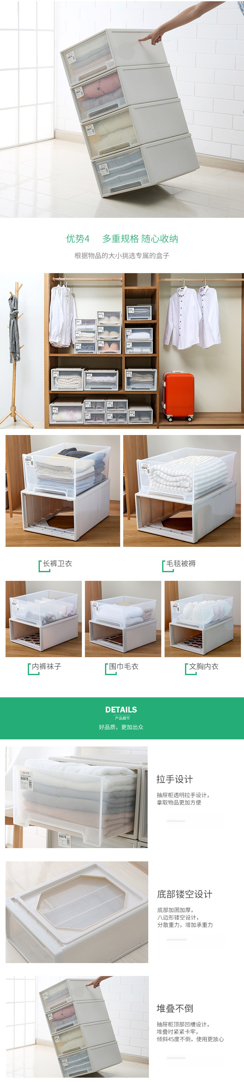 플라스틱 정리함 서랍형 수납함 투명 수납함 초대형 다층 조합 수납장 홈 옷장