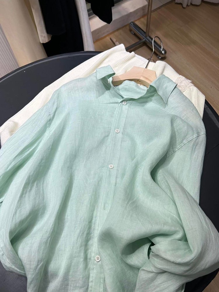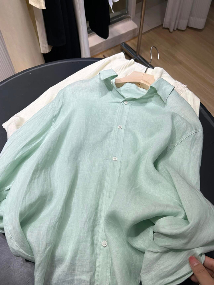 CHAO 등급 추천! 여름 여성을 위한 민트 그린 텐셀 린넨 셔츠 새로운 스타일 가볍고 편안하며 통기성이 뛰어난 자외선 차단 탑