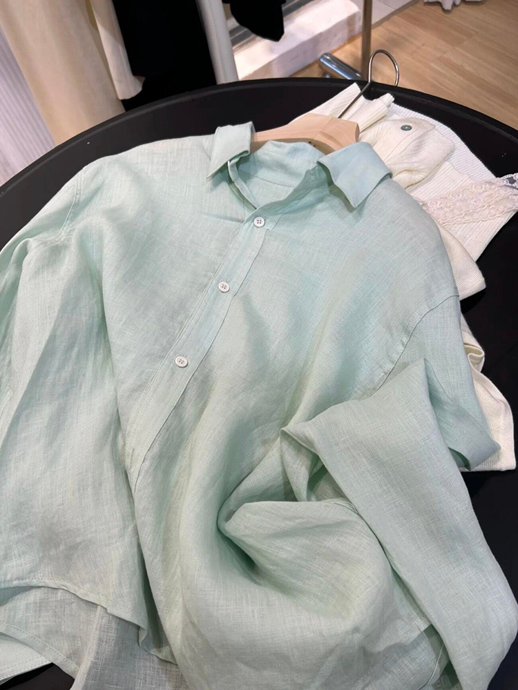 CHAO 등급 추천! 여름 여성을 위한 민트 그린 텐셀 린넨 셔츠 새로운 스타일 가볍고 편안하며 통기성이 뛰어난 자외선 차단 탑스토어 가기