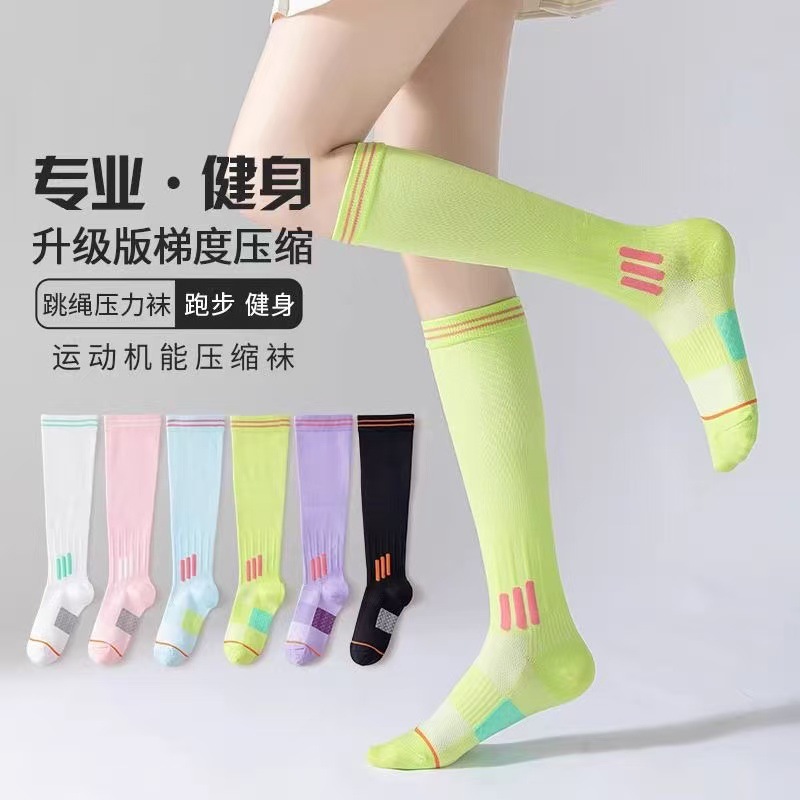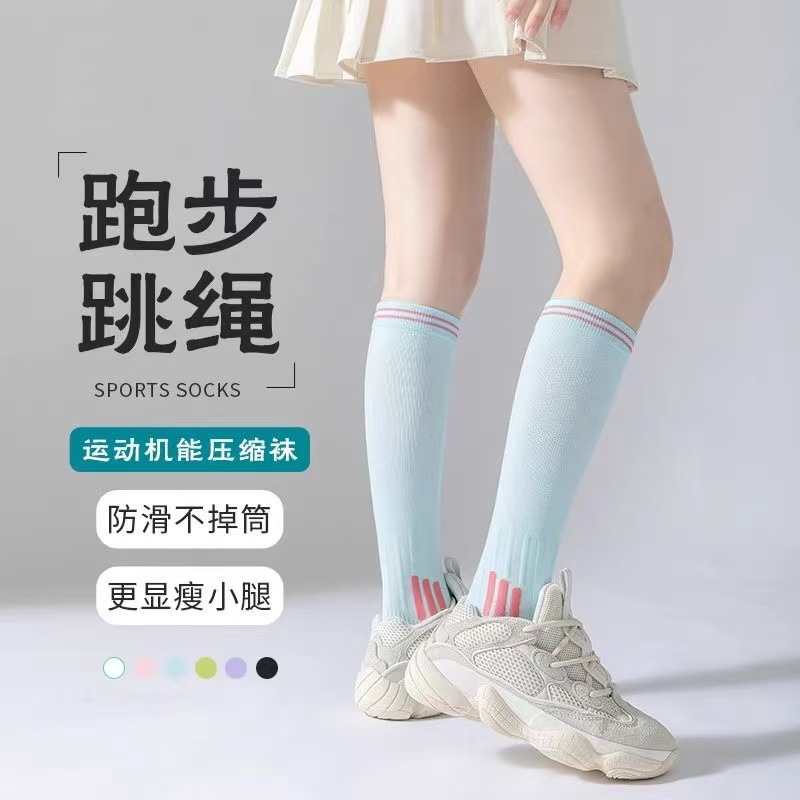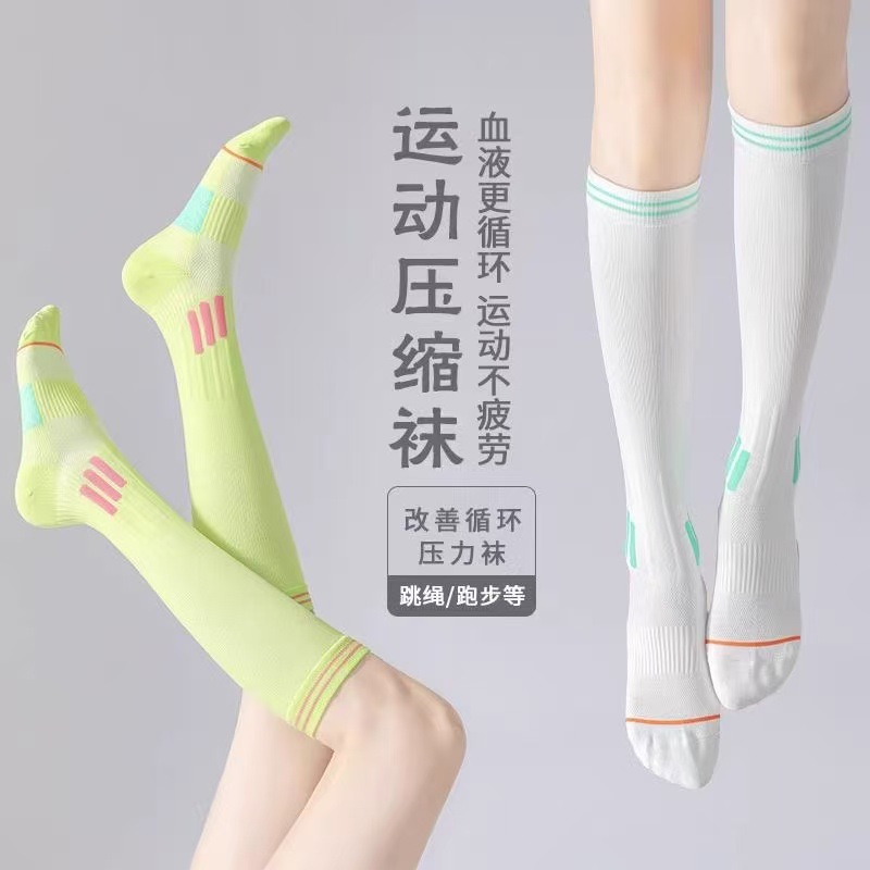 여름철 여성용 스포츠 기능성 종아리 양말, 피트니스 런닝, 줄넘기, 압축 탄성 다리 슬리밍 압박 양말, 롱 튜브스토어 가기