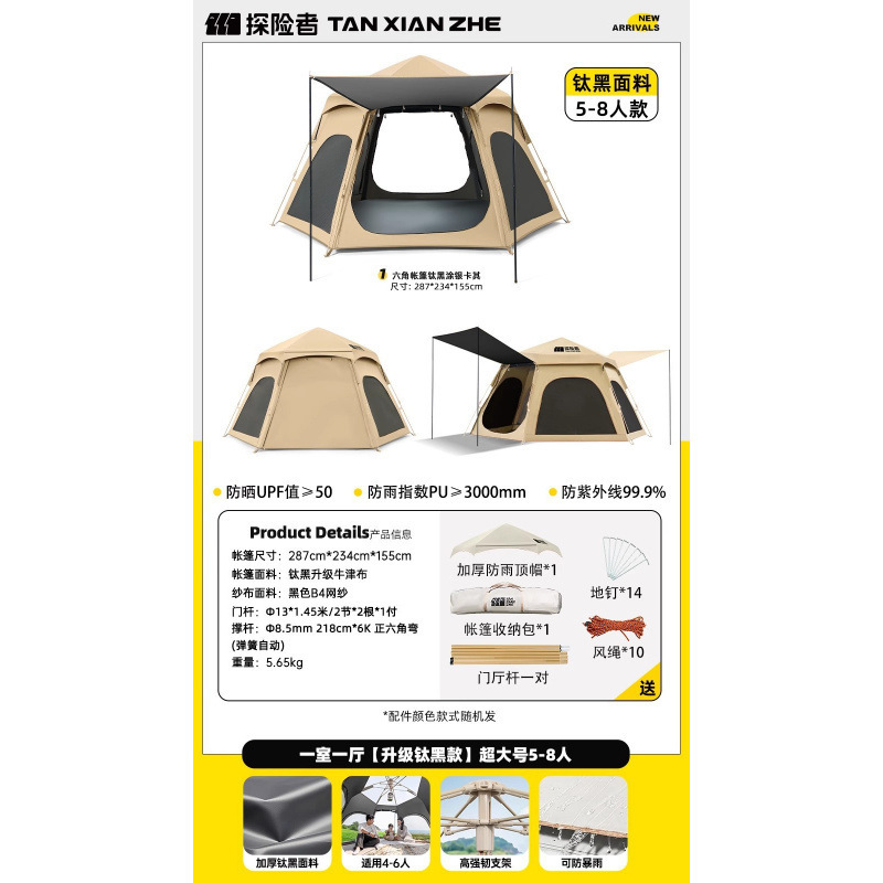 육각형 텐트 야외 캠핑 밤새 접이식 휴대용 자동 두꺼운 방수 캠핑 장비 캐노피스토어 가기