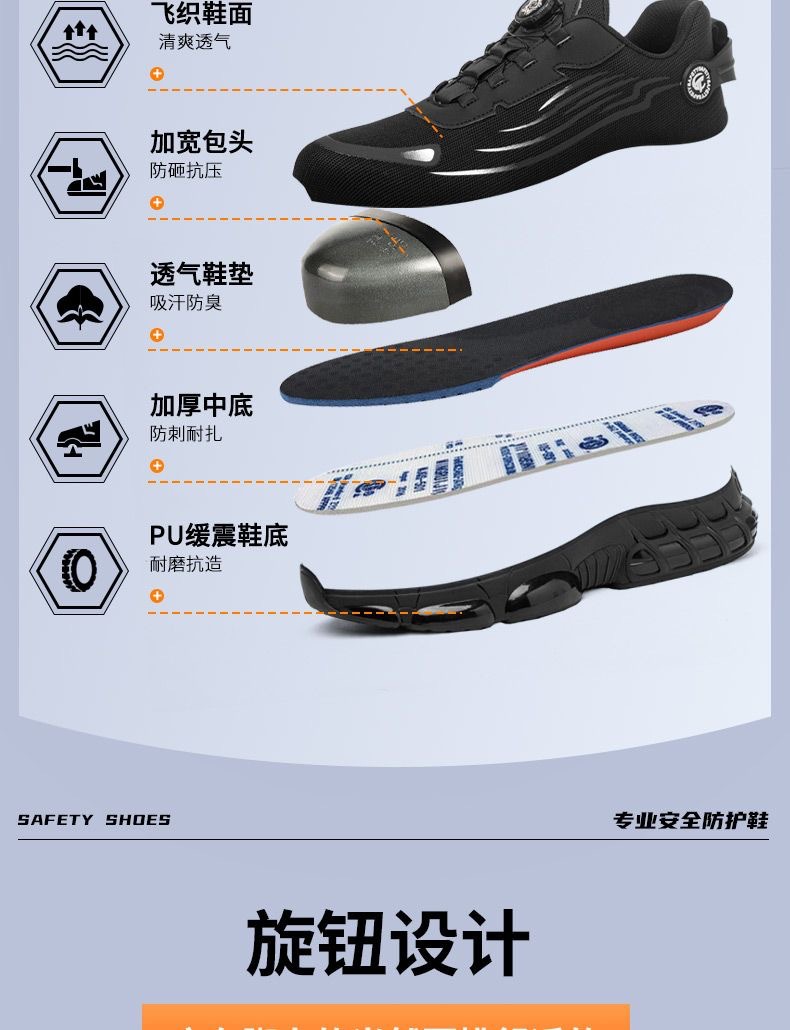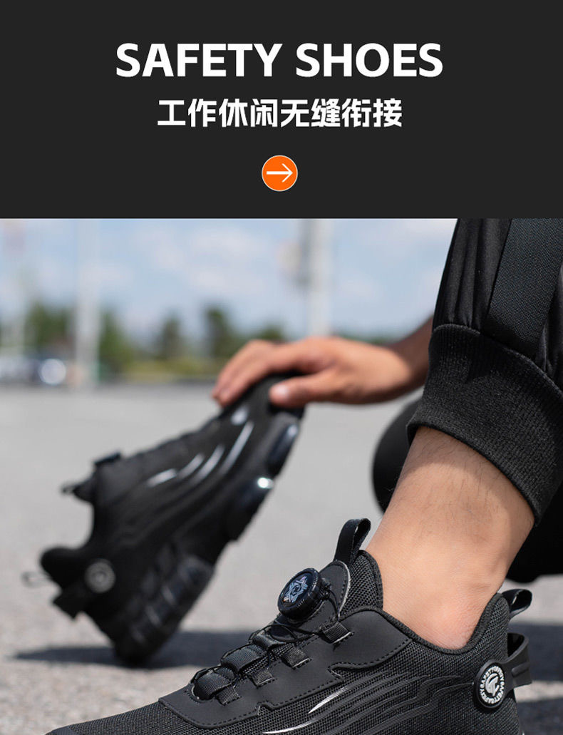 남성용 크로스보더 패션 새로운 회전 버튼 노동 보호 신발, 충격 방지 및 펑크 방지 안전화, 미끄럼 방지 및 내마모성 작업화스토어 가기