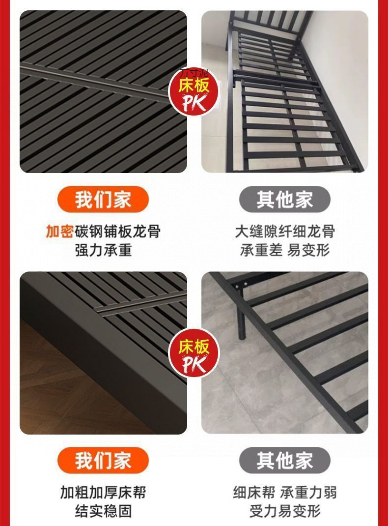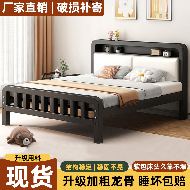 유럽식 철제 침대 1.8m 강화 및 두꺼운 더블 침대 1m 가정용 싱글 침대 스테인레스 스틸 임대 주택 철제 프레임 침대스토어 가기
