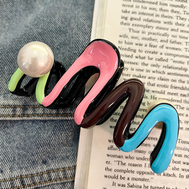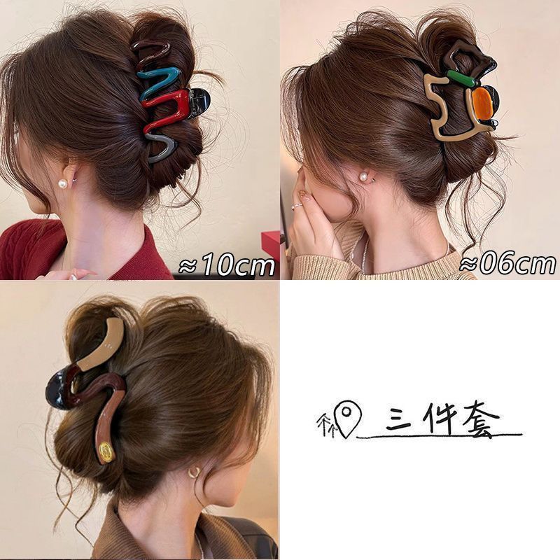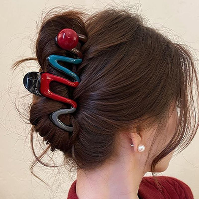 여성을 위한 프렌치 심플 대비 컬러 대형 웨이브 클립, 고급 샤크 클립 2025 뒷머리에 새로운 스타일의 헤어 액세서리