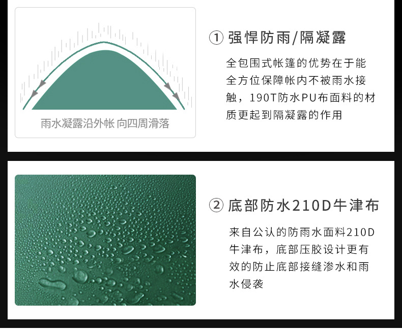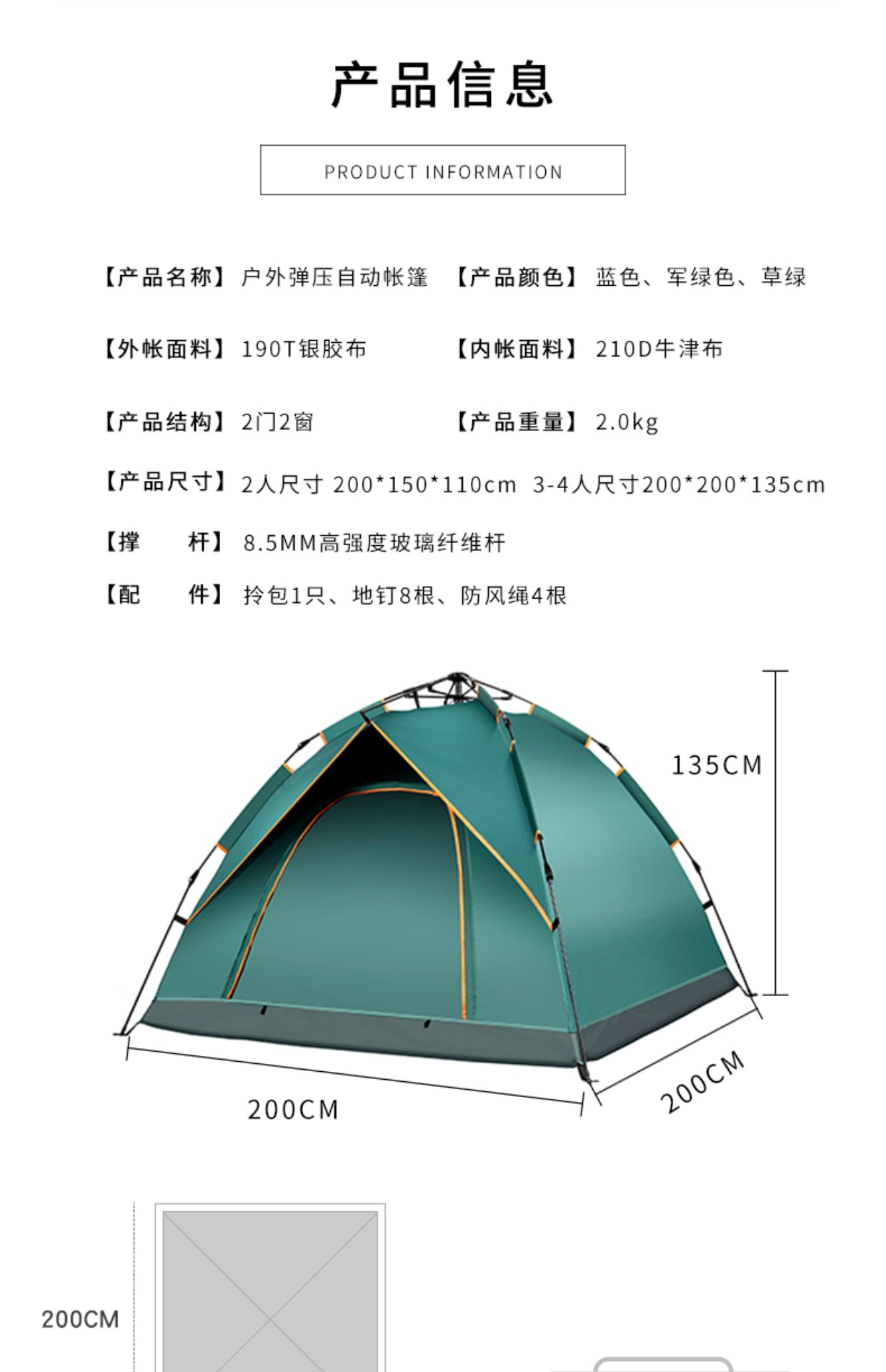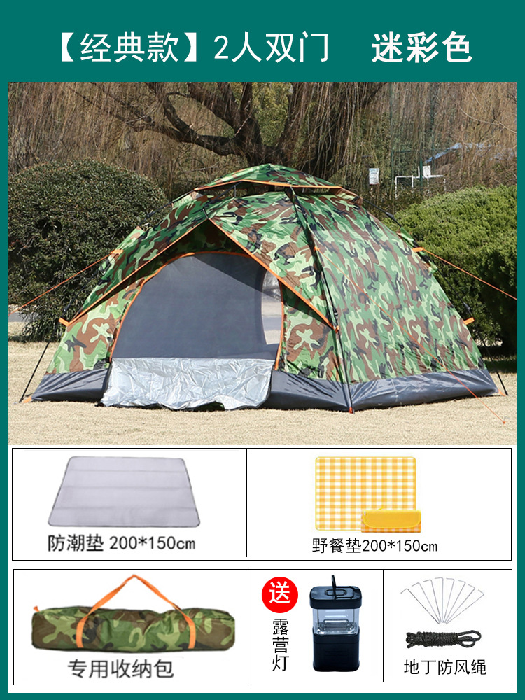 • 2인용 자동 위장색 + 방습 패드 + 베개 2개(탄성 텐트)