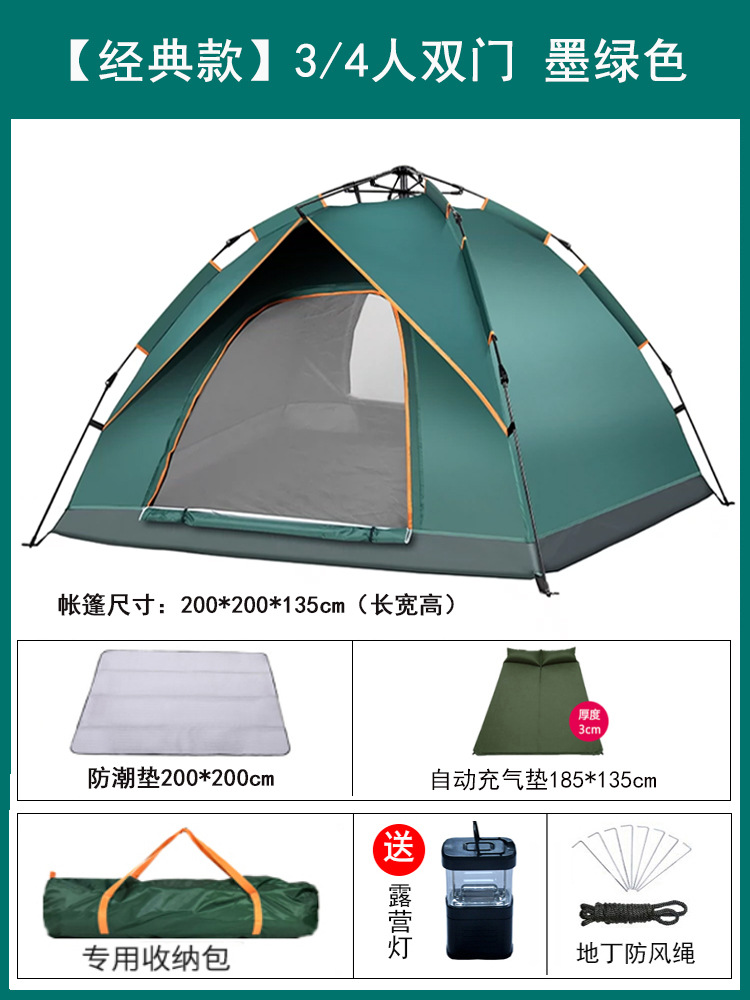 • 2인용 자동 짙은 녹색 + 방습 패드 + 공기주입식 베개(탄성압력 텐트)