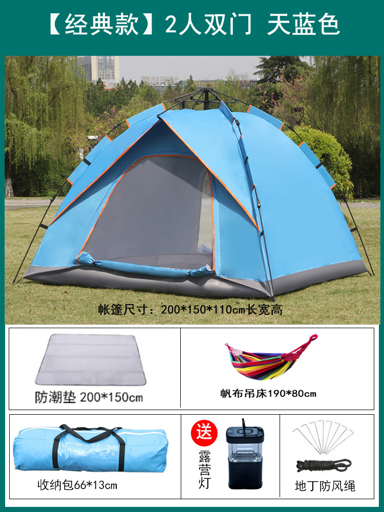 • 2인용 자동 하늘색 + 방습 패드 + 공기주입식 베개(탄성압력 텐트)