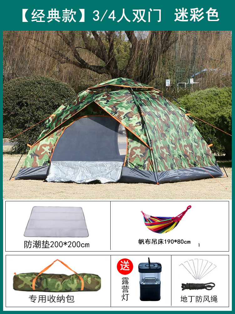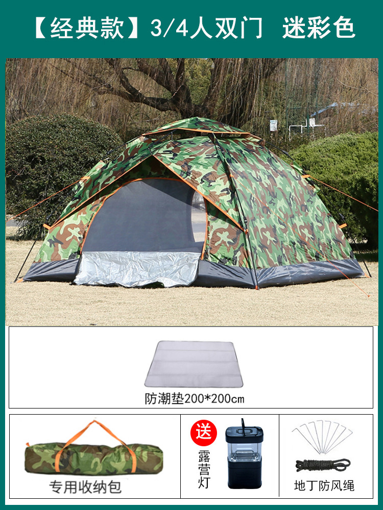 • 3/4인용 자동 위장색 + 방습 패드 + 자동 팽창식 패드(탄성압력 텐트)