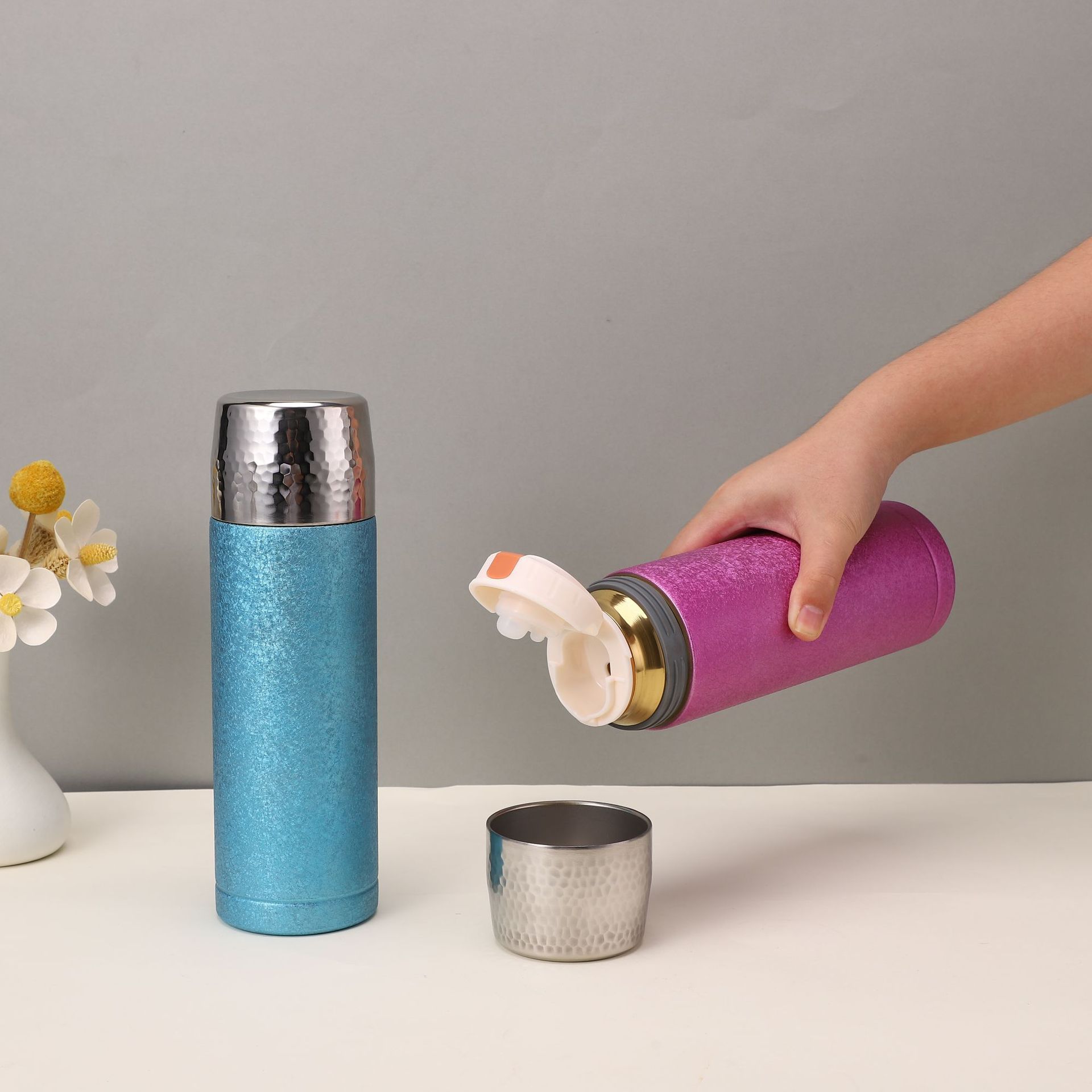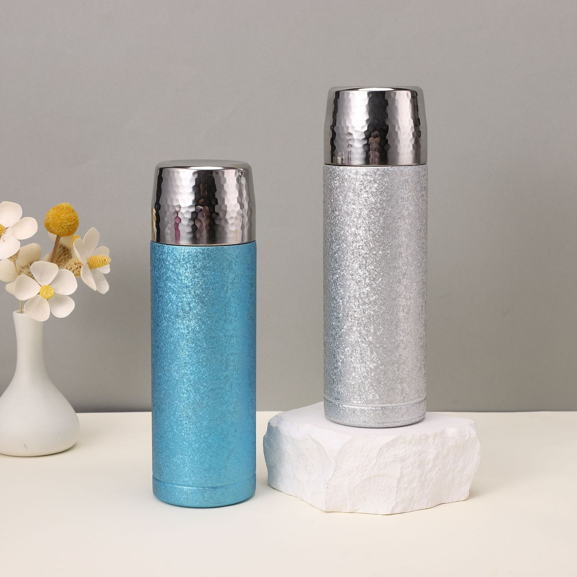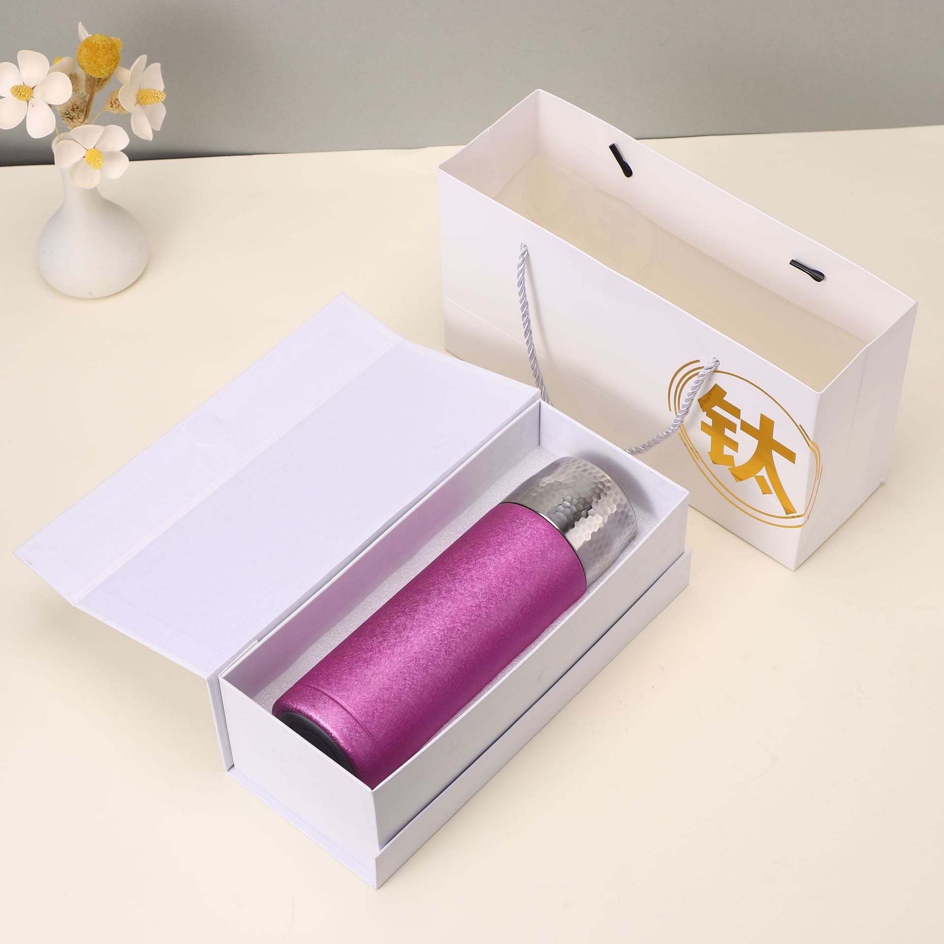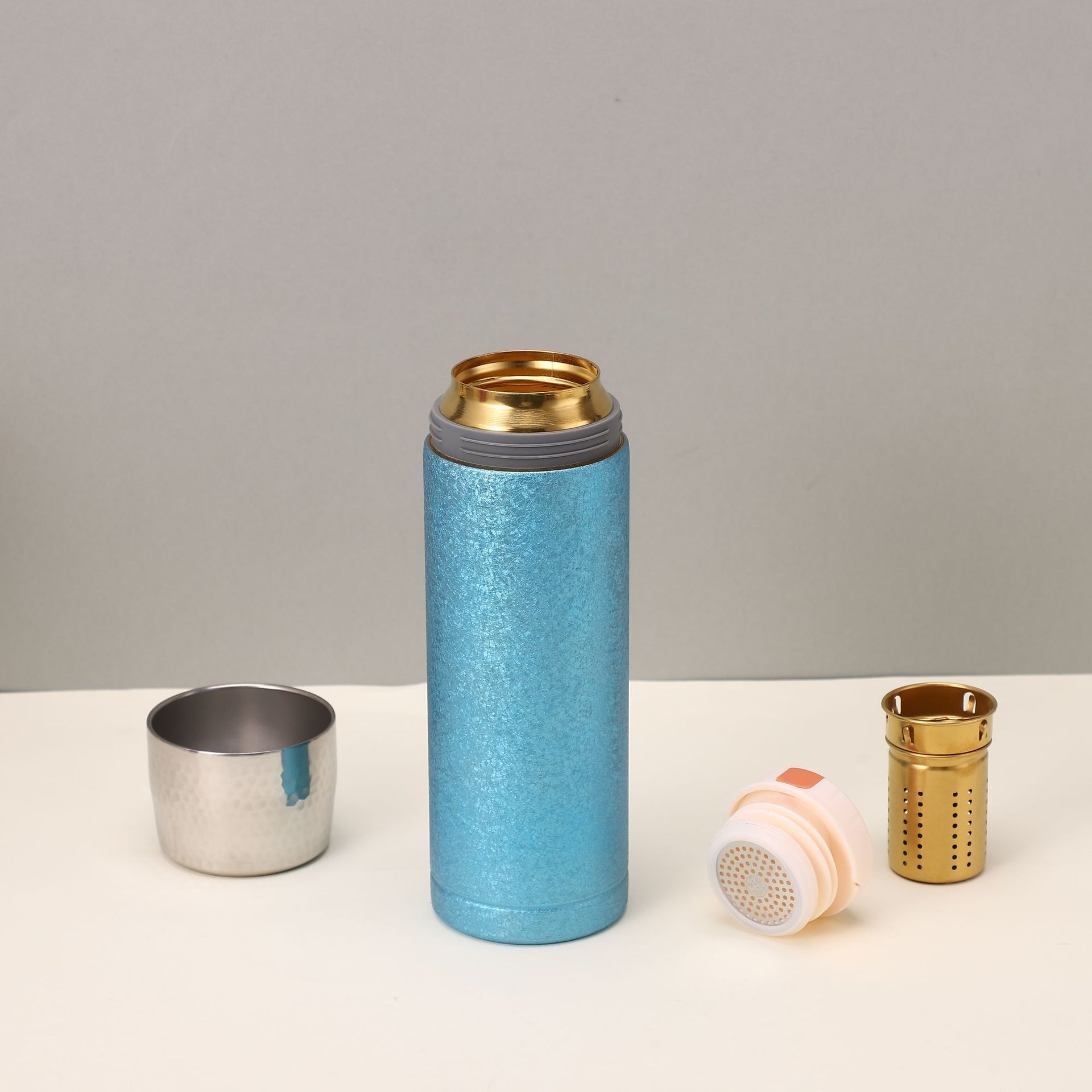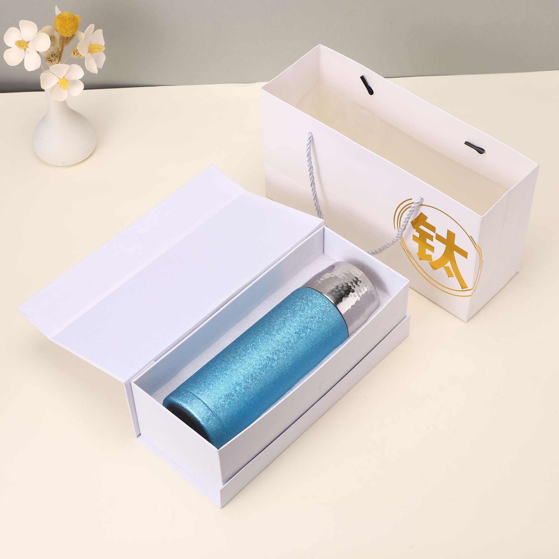 국경 간 간단한 가벼운 고급 티타늄 코팅 보온병 컵 휴대용 이중층 망치 패턴 차 티타늄 컵 가벼운 고급 고급 사무실 찌개 차 컵