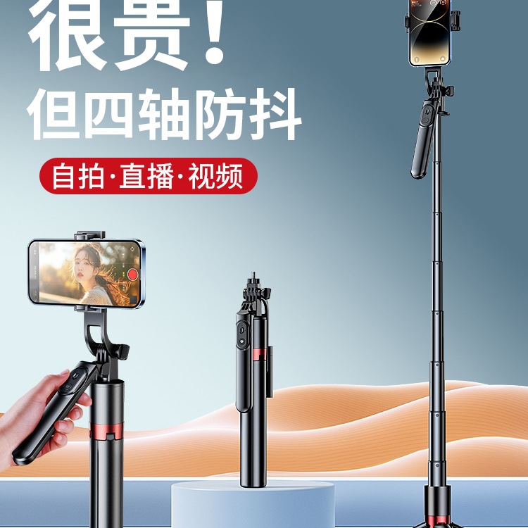 진정한 4축 손떨림 방지 2025 새로운 셀카봉 플로어 스탠딩 삼각대 휴대폰 사진 라이브 방송 스탠드 여행 휴대용스토어 가기