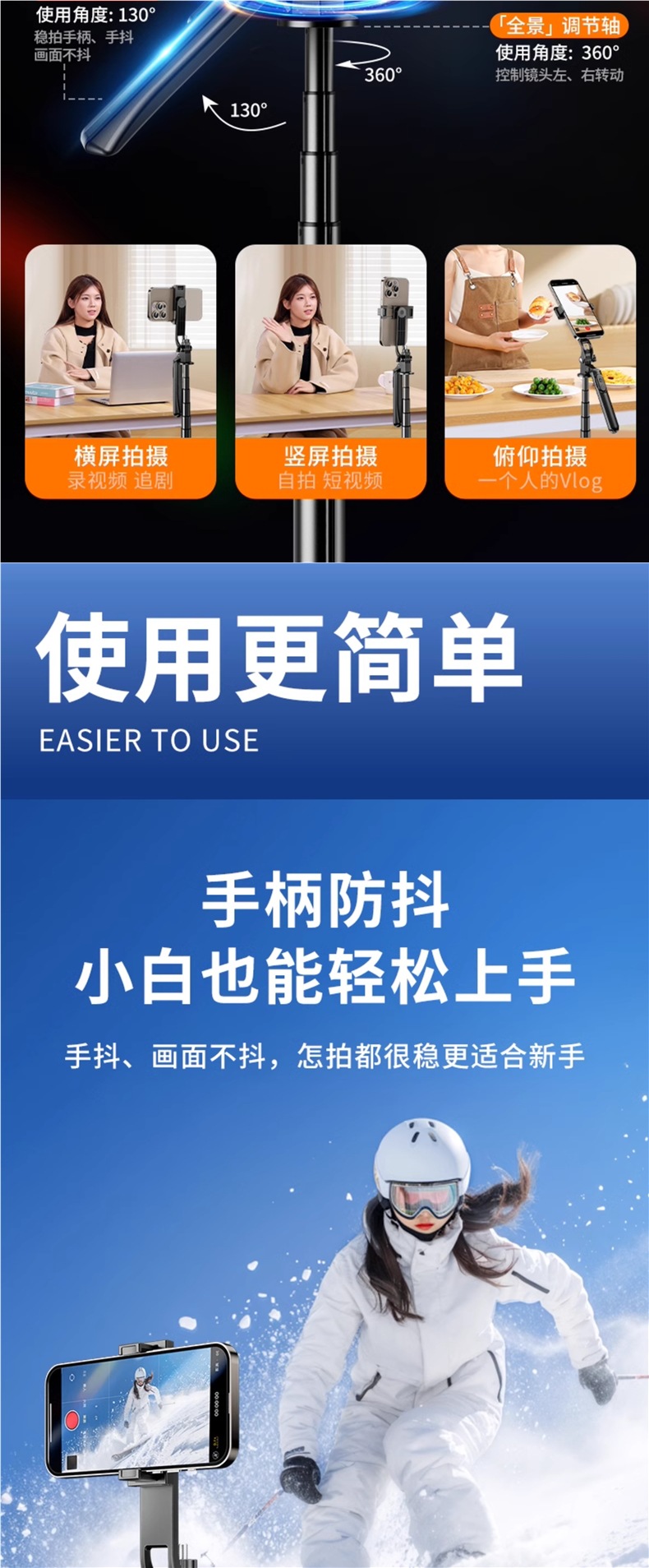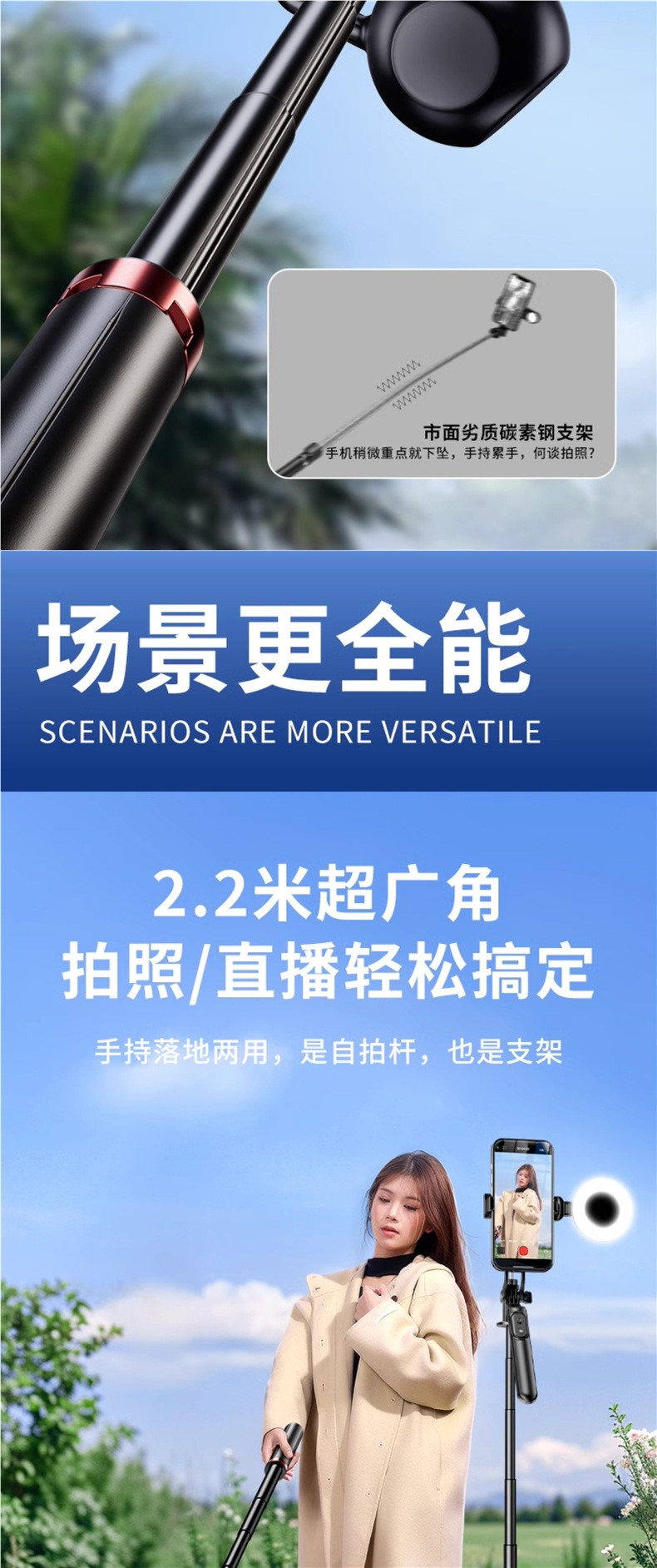• 2.2m [프로페셔널 라이브 뷰티 모델] 듀얼 카메라 ◆ 매우 안정적인 4개의 다리 ◆ 탄소 섬유 강철 흔들림 방지 ◆ 360 ° 회전 ◆ 다기능 리모콘