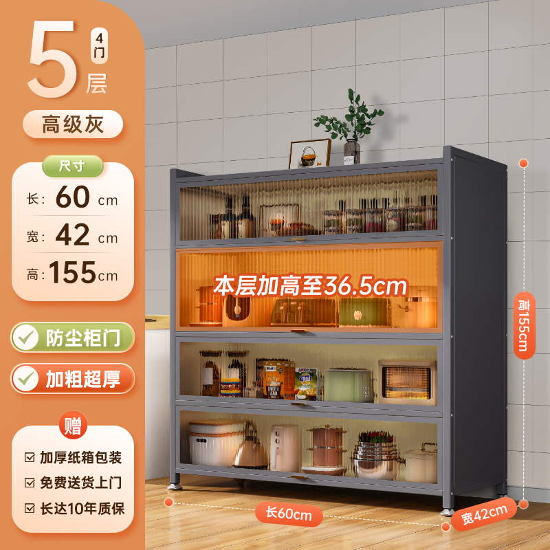 주방 랙 바닥에서 천장까지 다층 스토리지 캐비닛 전자 레인지 가정용 도어 다기능 캐비닛 방진 스토리지 캐비닛