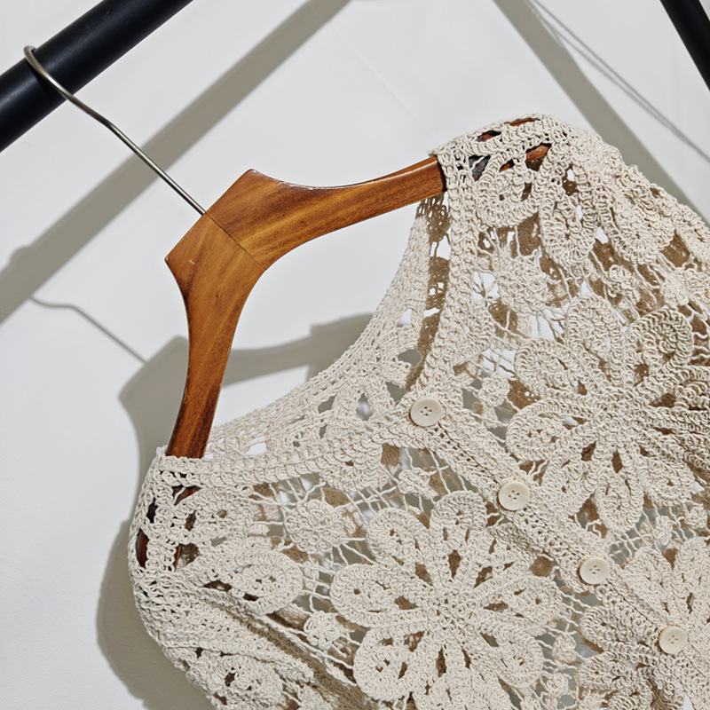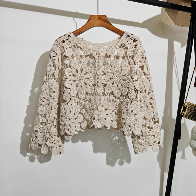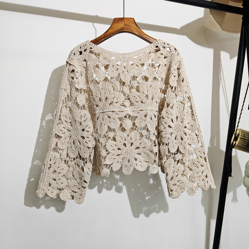여성용 봄 여름 니트 크로셰 자켓, 보헤미안 스타일 중공 직조 긴팔 가디건, 에어컨 탑 1062스토어 가기