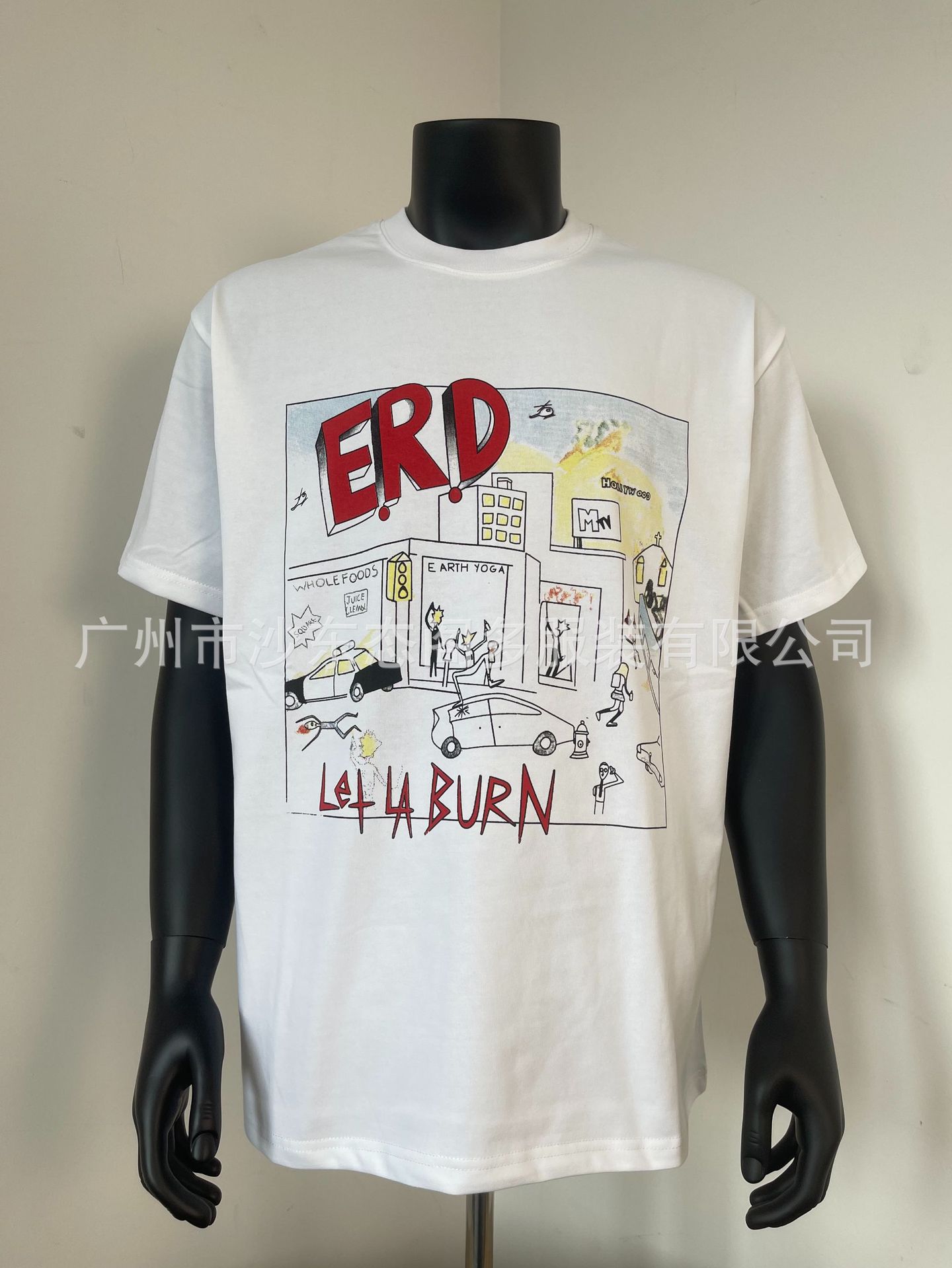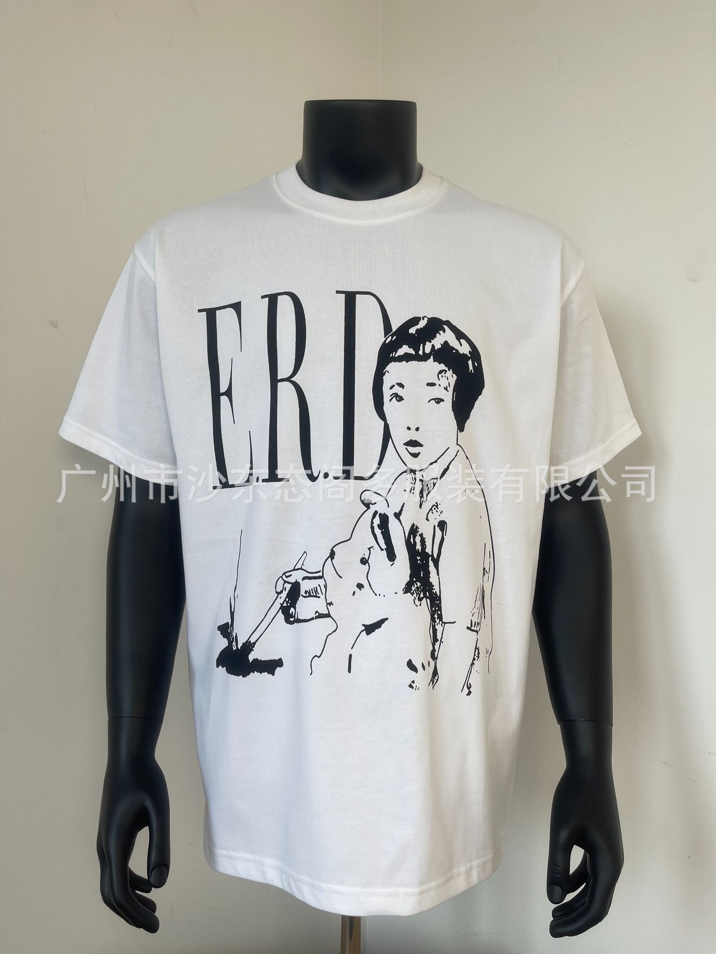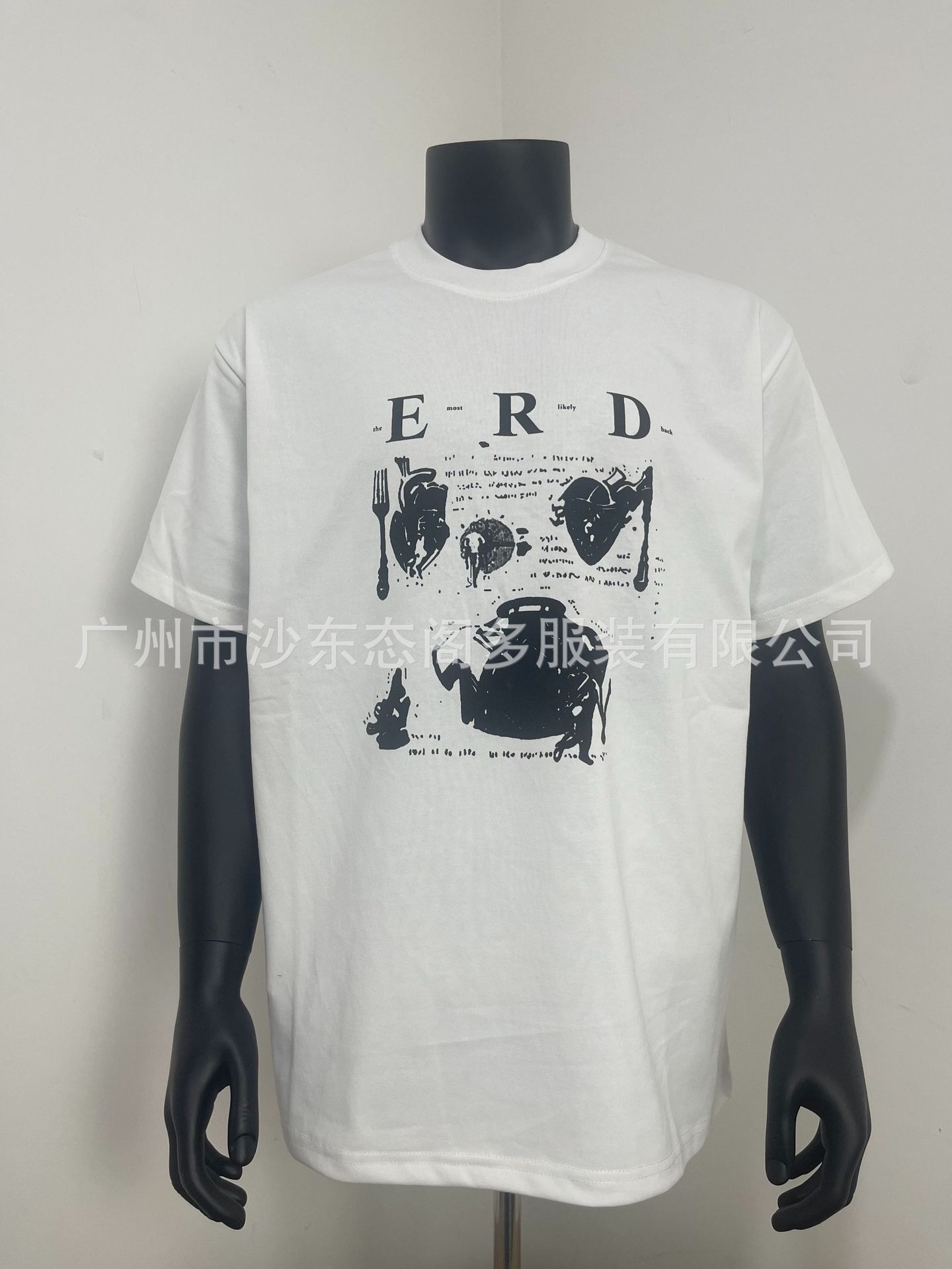 ERD 우울한 부자 두 번째 세대 틈새 트렌디 브랜드 아메리칸 하이 스트리트 여름 퓨어 코튼 루즈 남성 커플 반팔 티셔츠스토어 가기