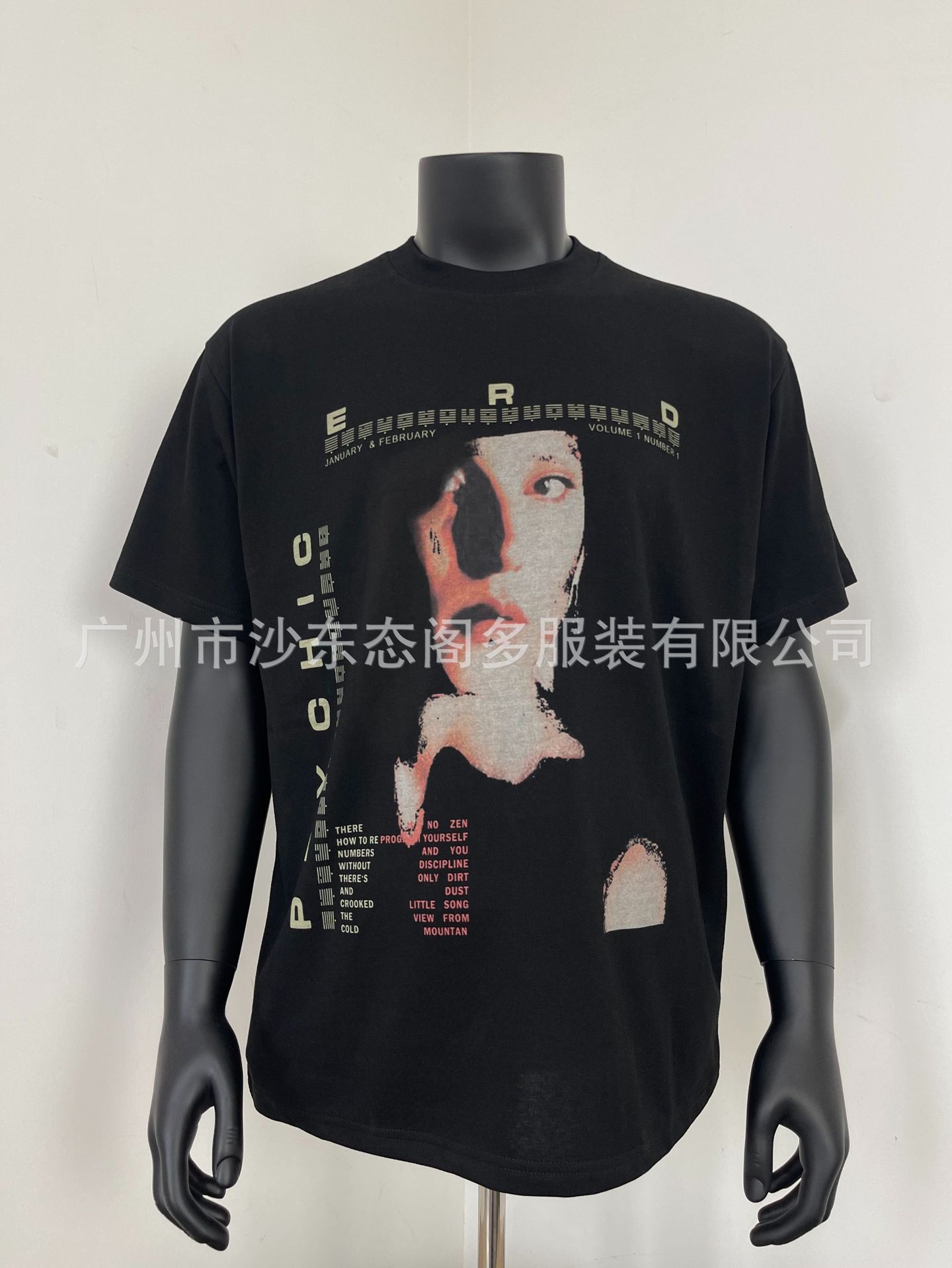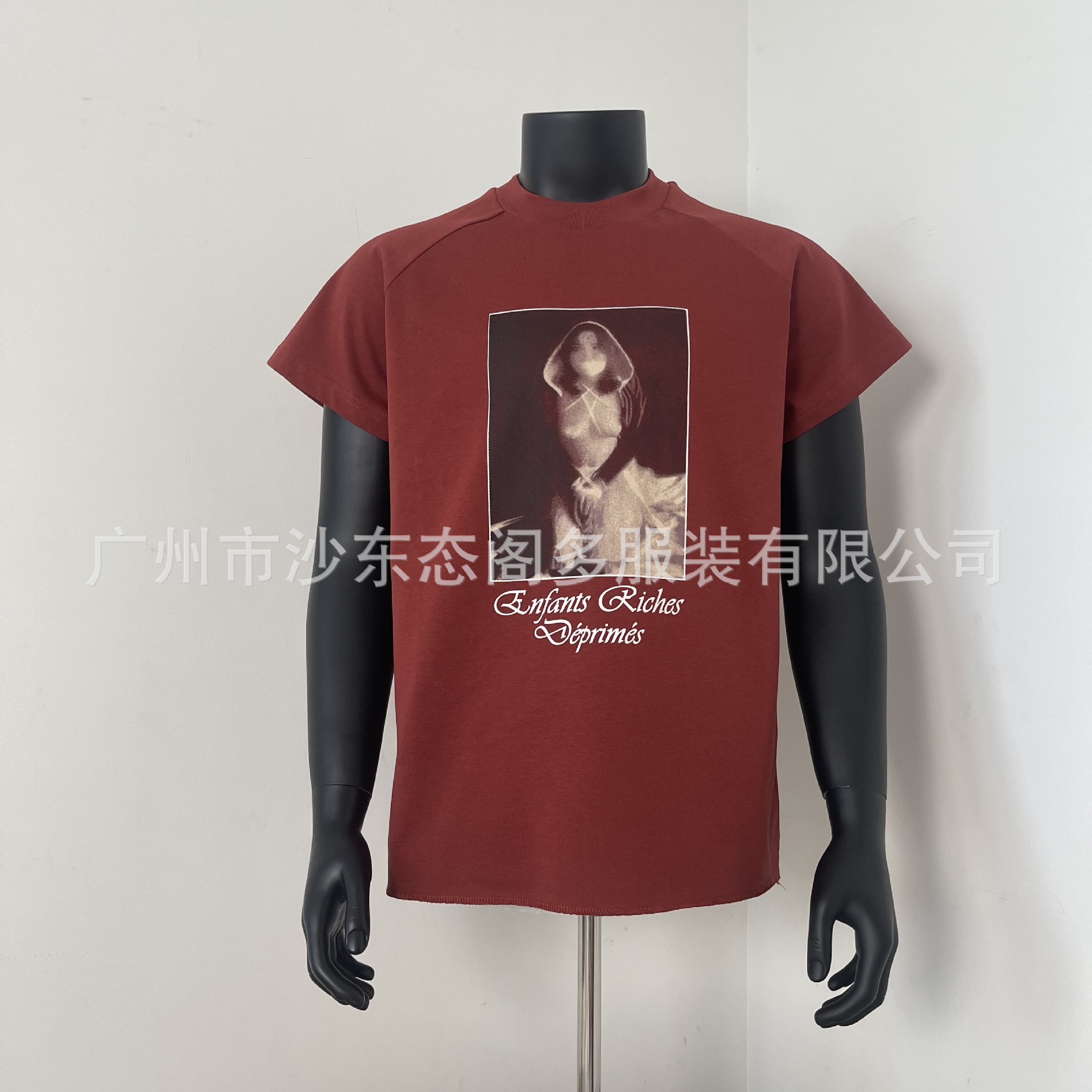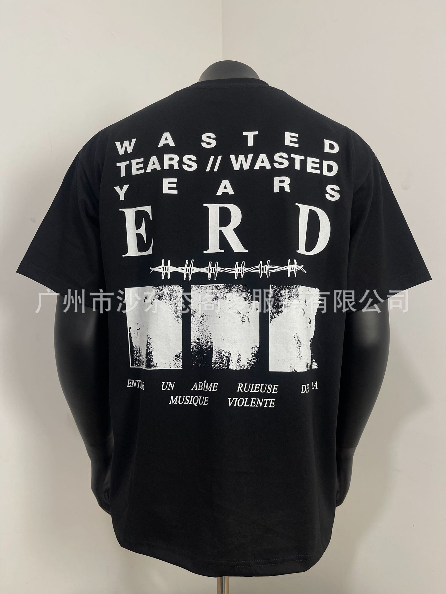 ERD 우울한 부자 두 번째 세대 틈새 트렌디 브랜드 아메리칸 하이 스트리트 여름 퓨어 코튼 루즈 남성 커플 반팔 티셔츠스토어 가기