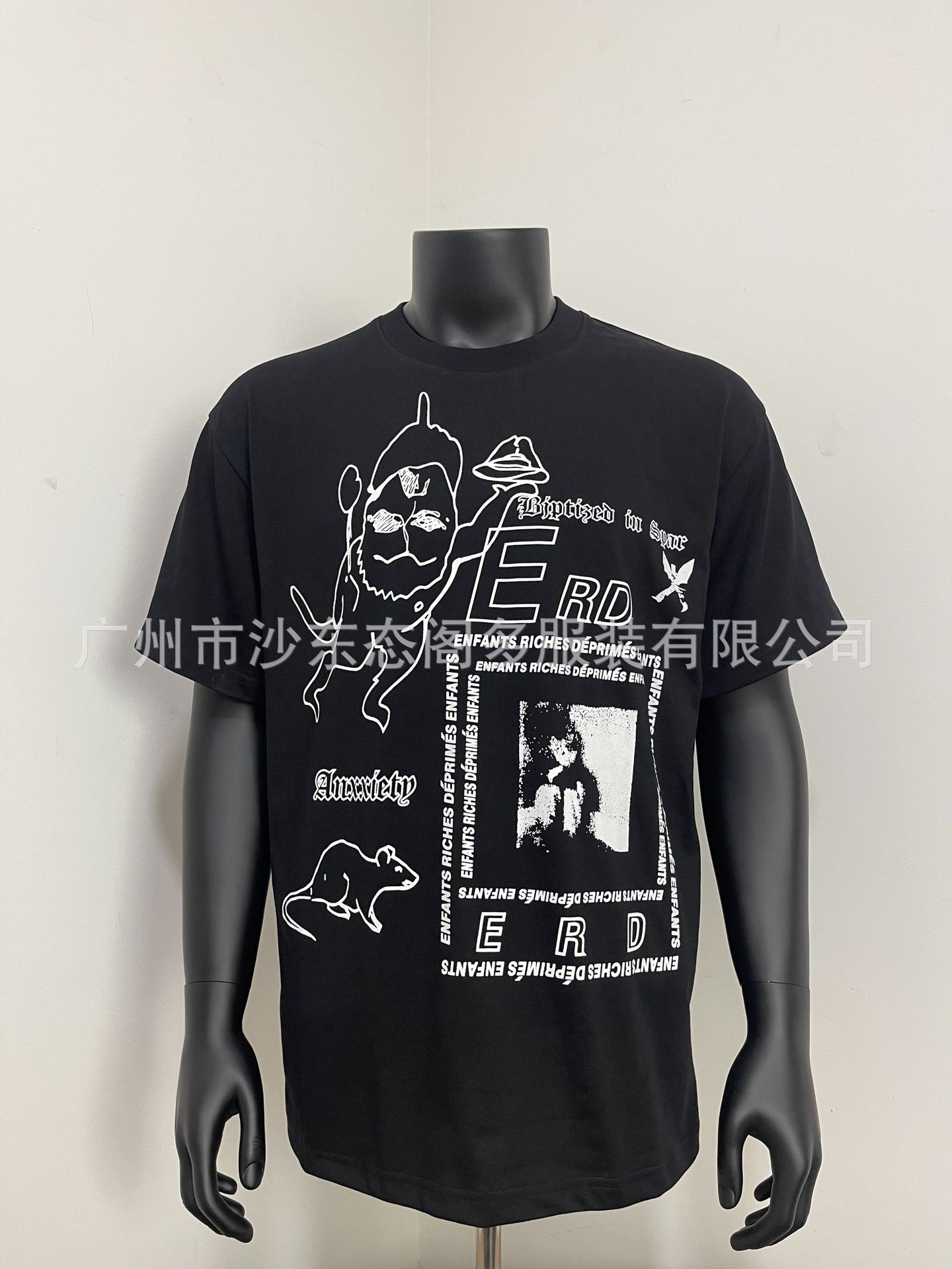 ERD 우울한 부자 두 번째 세대 틈새 트렌디 브랜드 아메리칸 하이 스트리트 여름 퓨어 코튼 루즈 남성 커플 반팔 티셔츠