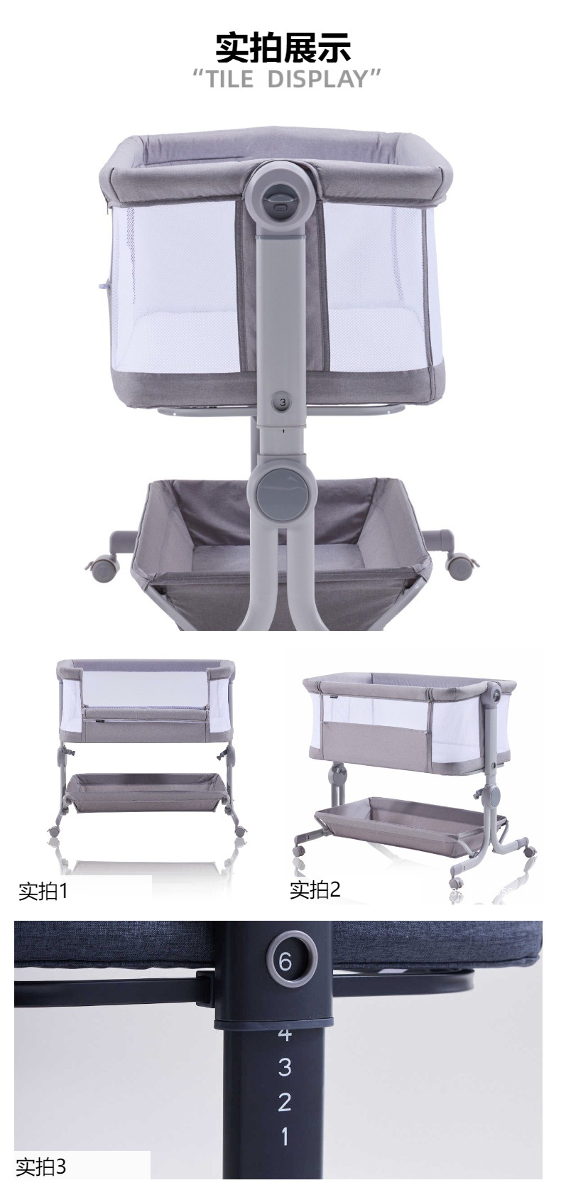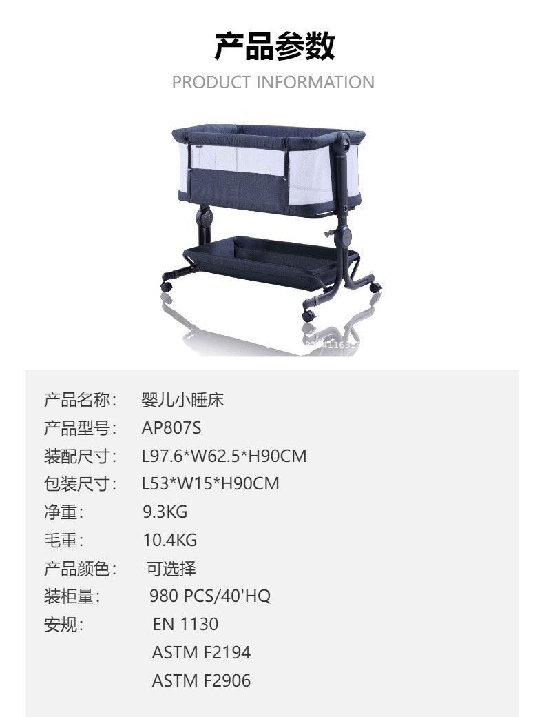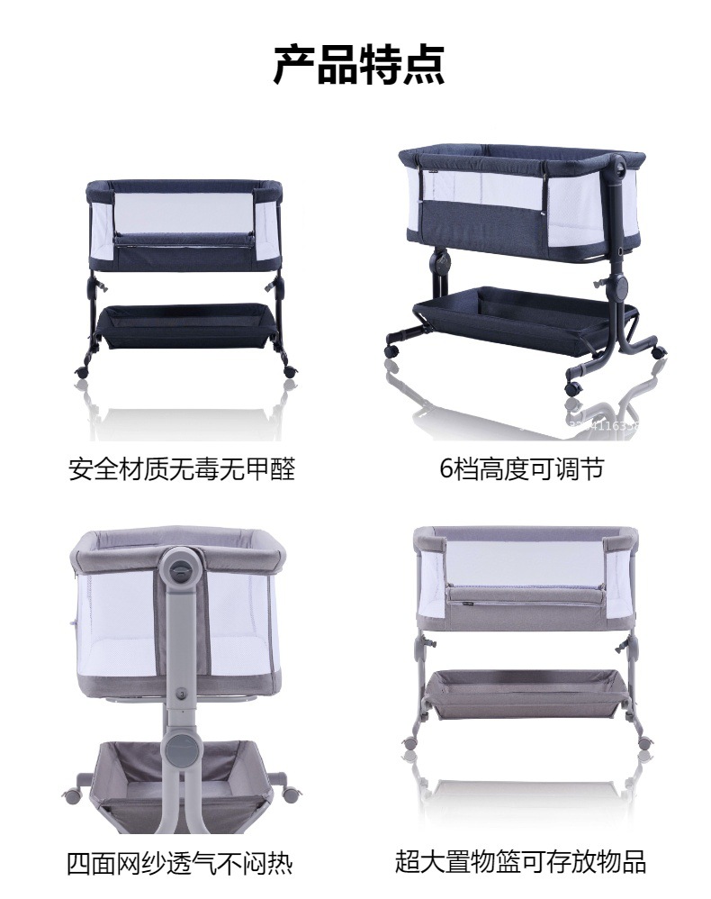 MUE 편리한 아기 침대 AP807S 높낮이 조절이 가능한 이동식 침대 옆 침대 다기능 어린이 낮잠 침대