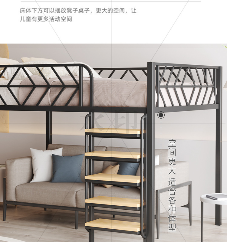 9U 철제 이층 침대, 소형 로프트 침대, 공간 절약형 이층 침대, 복층형 이층 침대, 성인용 이층 철제 프레임