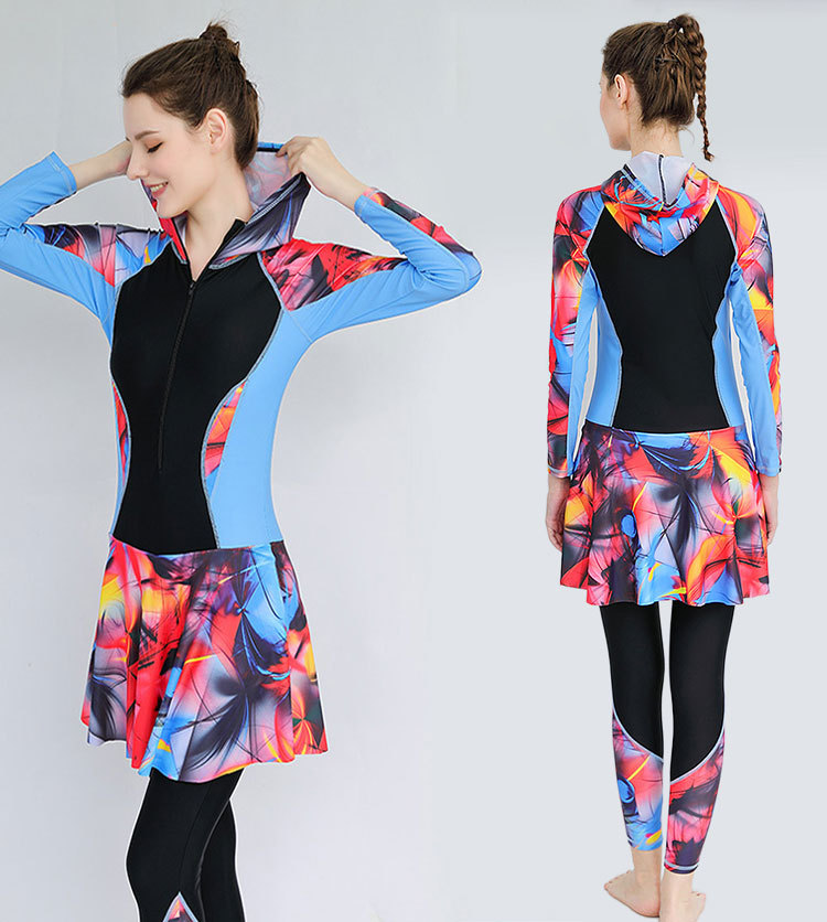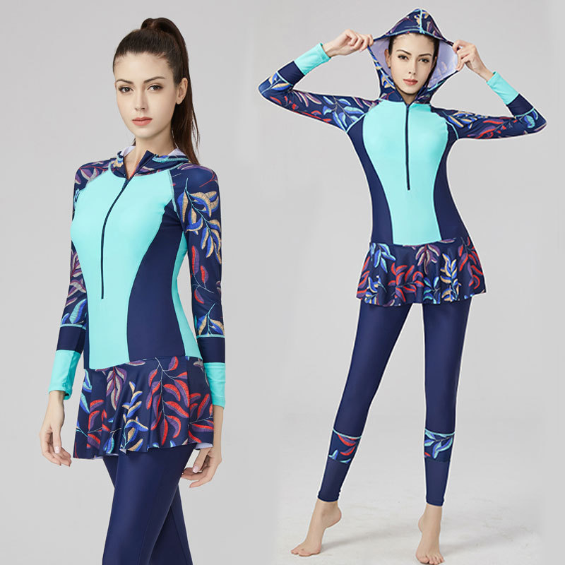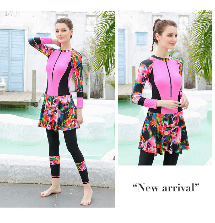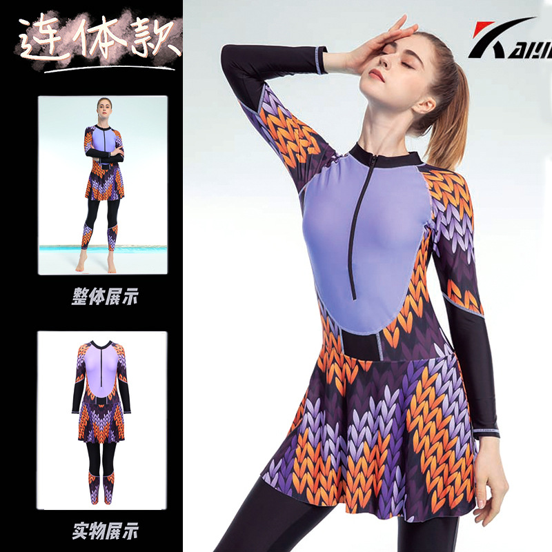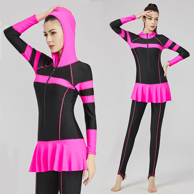 大码潜水服泳衣女胖mm200斤显瘦长袖长裤防晒温泉学生运动游泳装