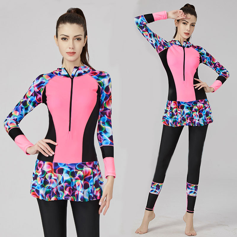 뚱뚱한 여성을위한 플러스 사이즈 잠수복 수영복 mm 100kg 슬리밍 긴팔 바지 태양 보호 온천 학생 스포츠 수영복