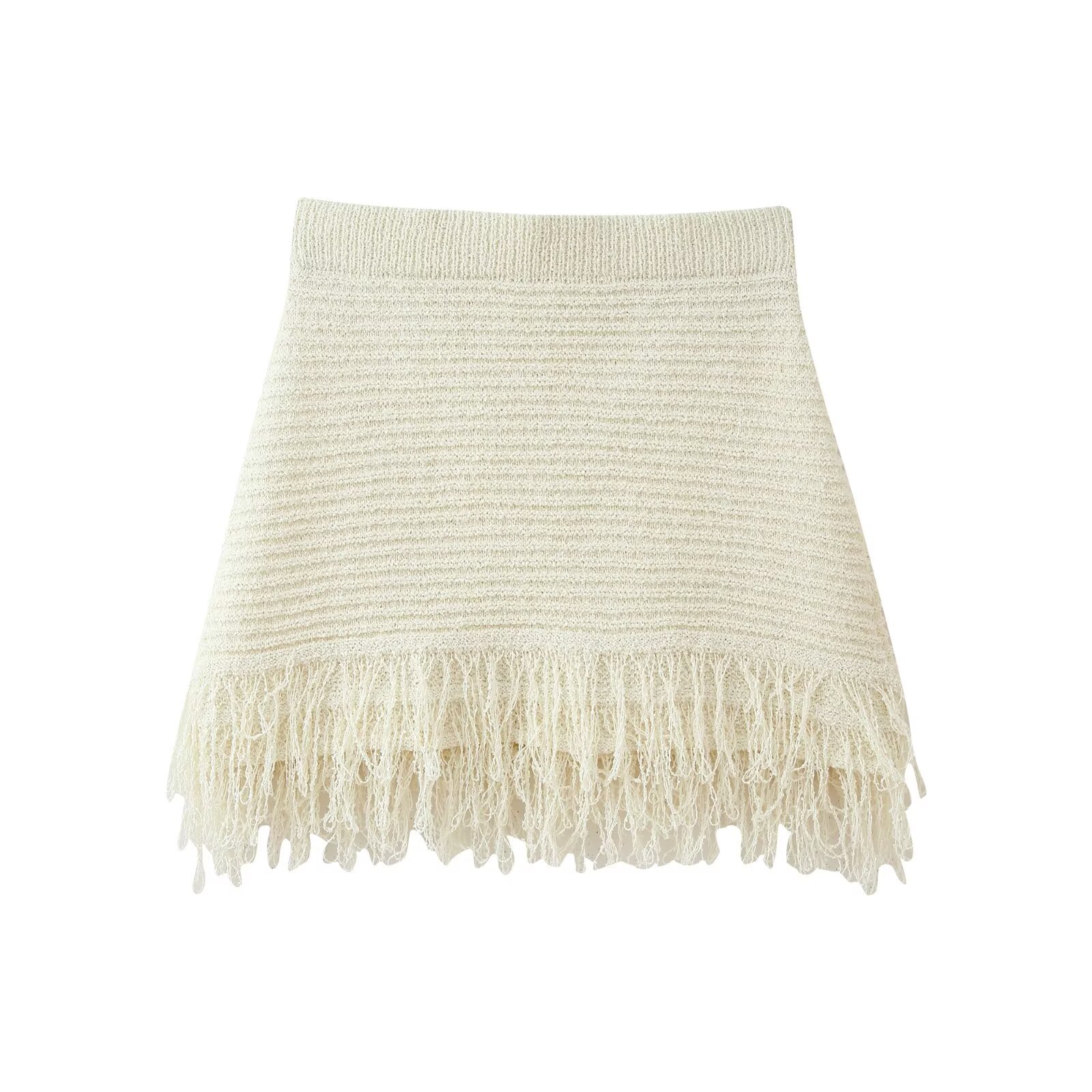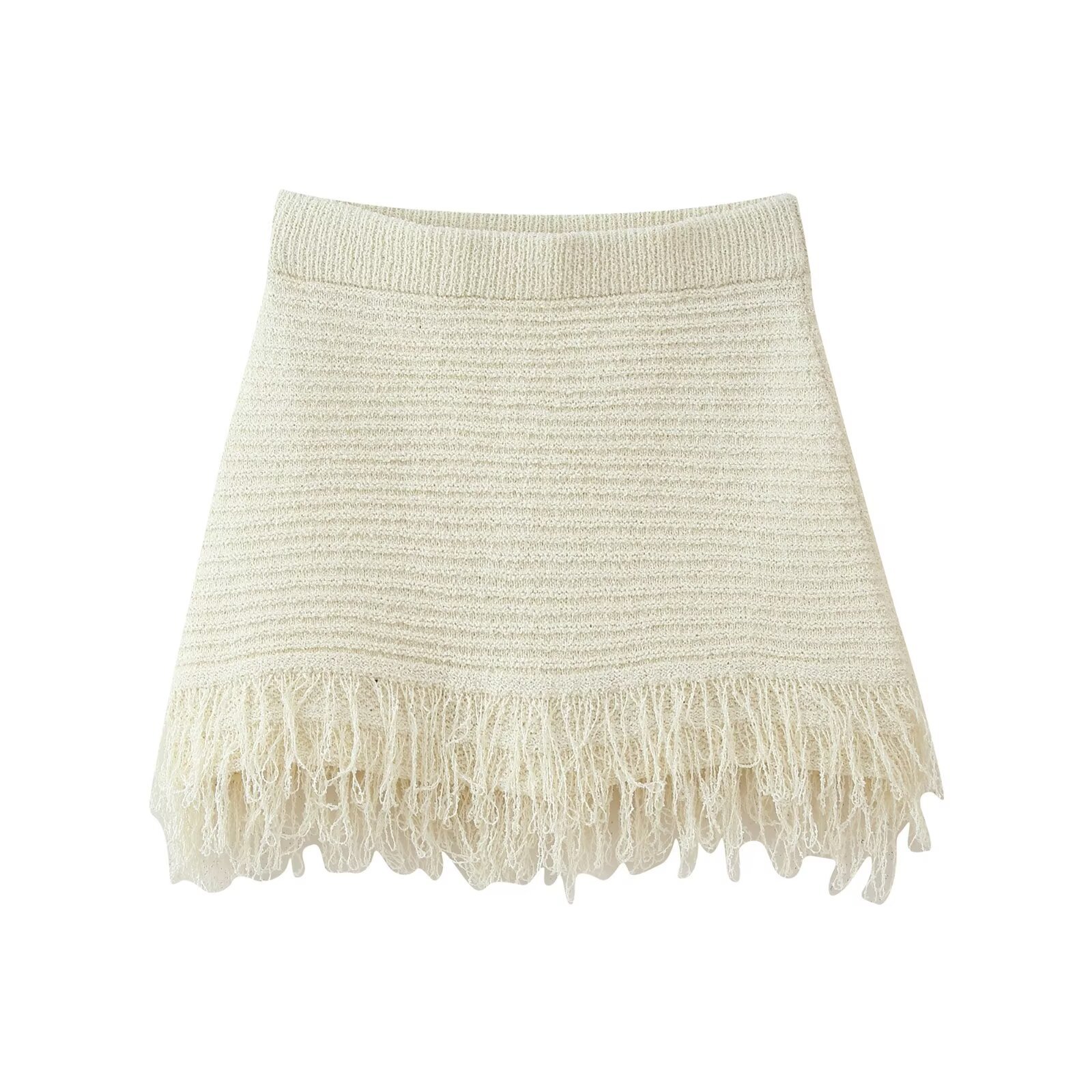 고품질 국경 간 여성 의류 2025 여름 유럽과 미국의 태슬 니트 탑 + 태슬 스커트 슈트