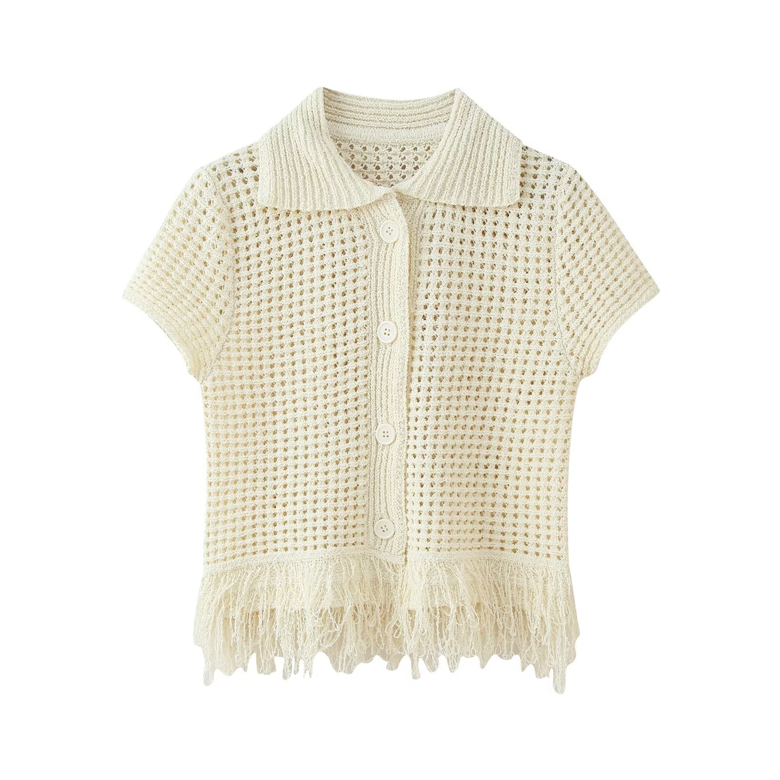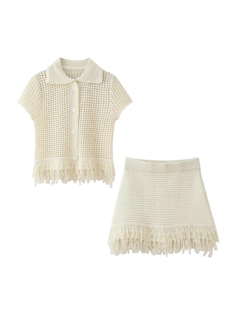 고품질 국경 간 여성 의류 2025 여름 유럽과 미국의 태슬 니트 탑 + 태슬 스커트 슈트스토어 가기