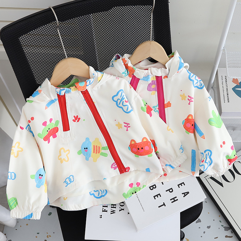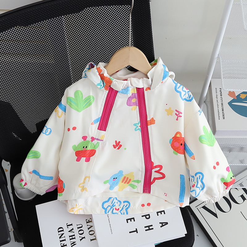 아기 소녀의 세련된 가을 코트 2025 봄, 가을 새로운 스타일 소녀 한국 스타일 더블 지퍼 더블 레이어 아기 후드 가디건스토어 가기