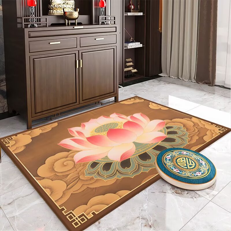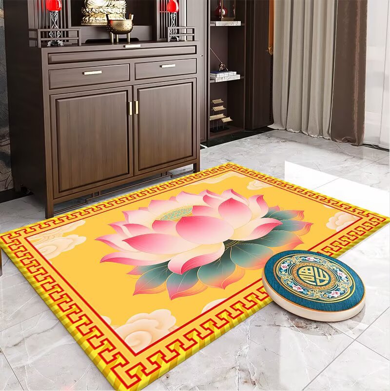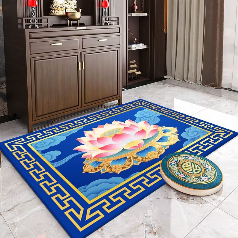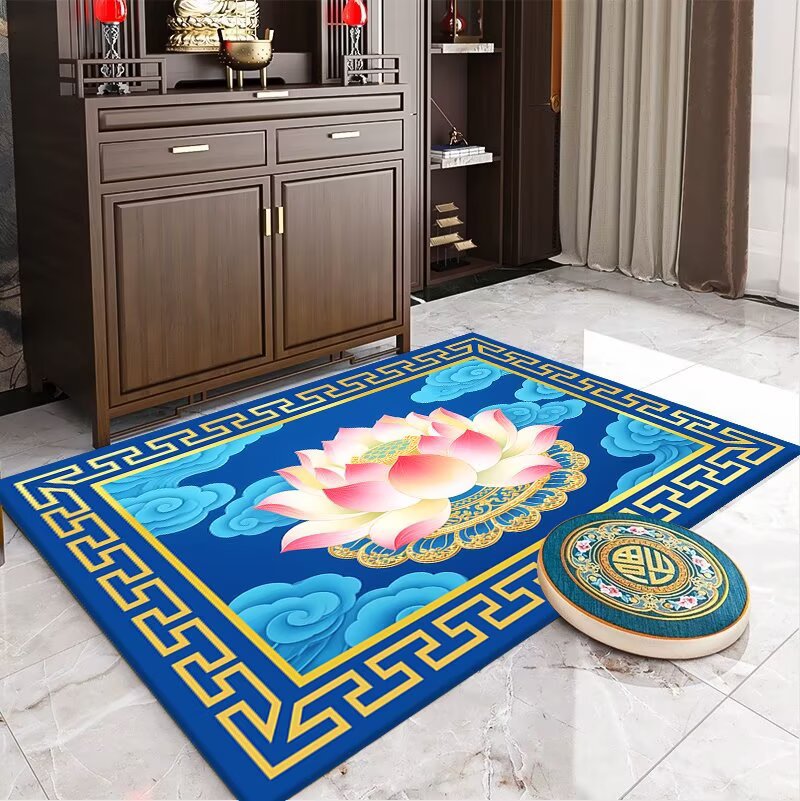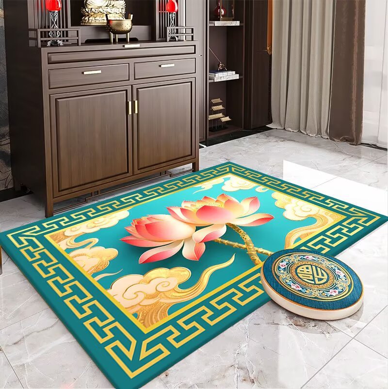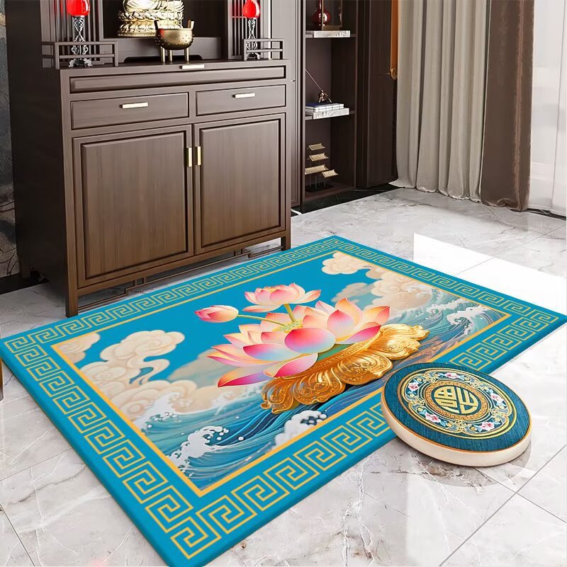 연꽃 카펫 중국식 기도 매트 크리스탈 벨벳 바닥 매트 내마모성, 먼지 방지 및 관리가 쉬운 바닥 매트