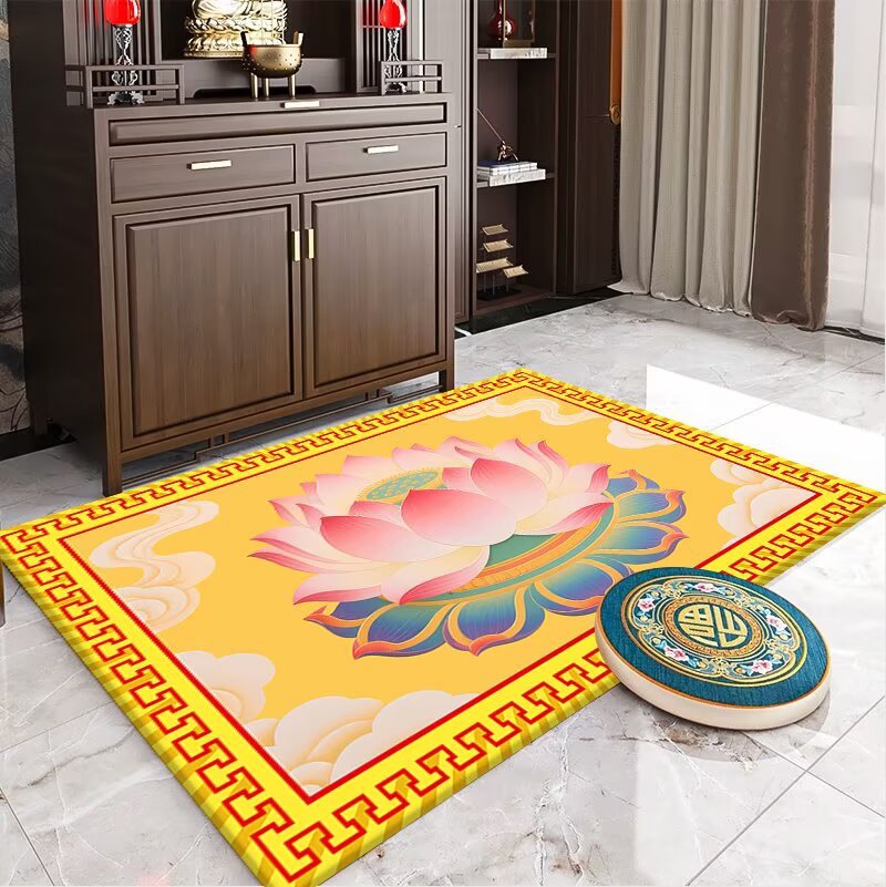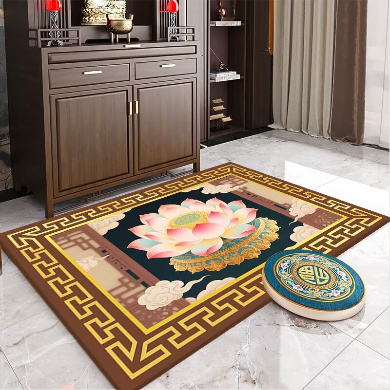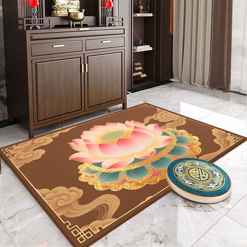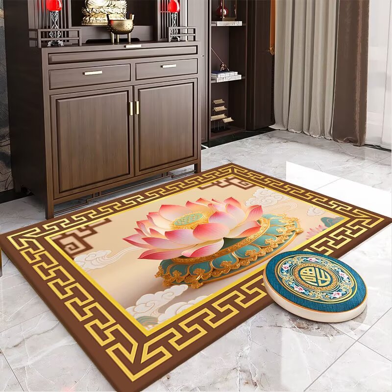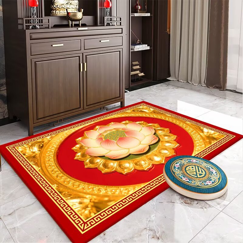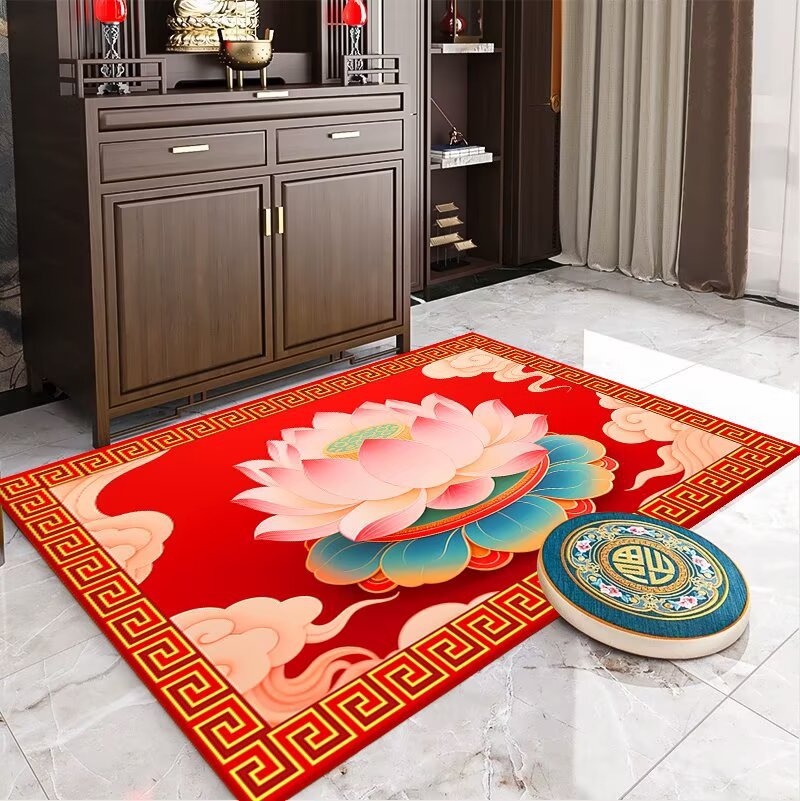 연꽃 카펫 중국식 기도 매트 크리스탈 벨벳 바닥 매트 내마모성, 먼지 방지 및 관리가 쉬운 바닥 매트