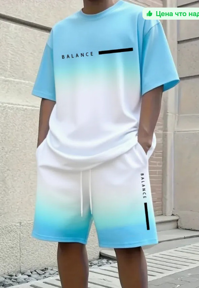 2025 새로운 캐주얼 스포츠 반팔 티셔츠 남자 여름 새로운 그라데이션 편지 라운드 넥 티셔츠 반바지 정장