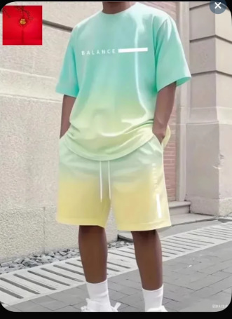 2025 새로운 캐주얼 스포츠 반팔 티셔츠 남자 여름 새로운 그라데이션 편지 라운드 넥 티셔츠 반바지 정장스토어 가기