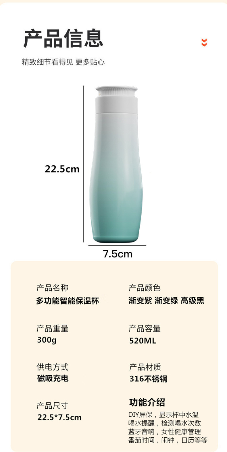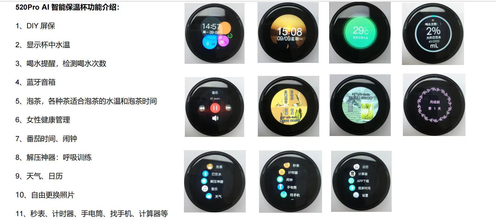 국경 간 AI 지능형 스크린 프로젝션 보온병 컵 화면 보호기 수온 식수 알림 블루투스 스피커 건강 관리 선물 비즈니스