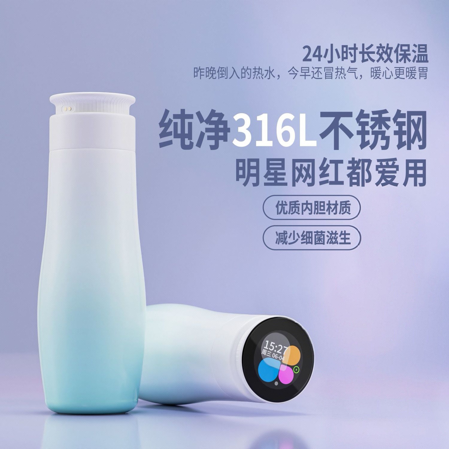 국경 간 AI 지능형 스크린 프로젝션 보온병 컵 화면 보호기 수온 식수 알림 블루투스 스피커 건강 관리 선물 비즈니스스토어 가기