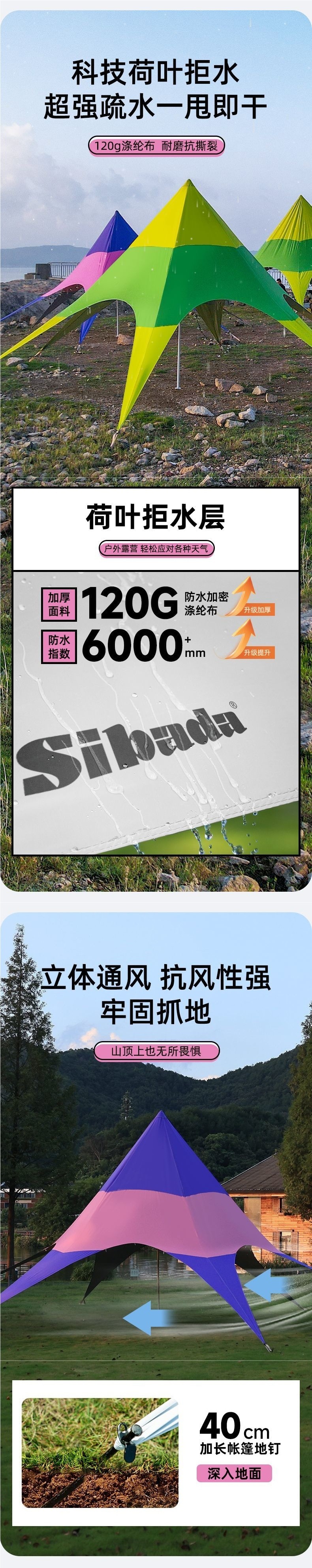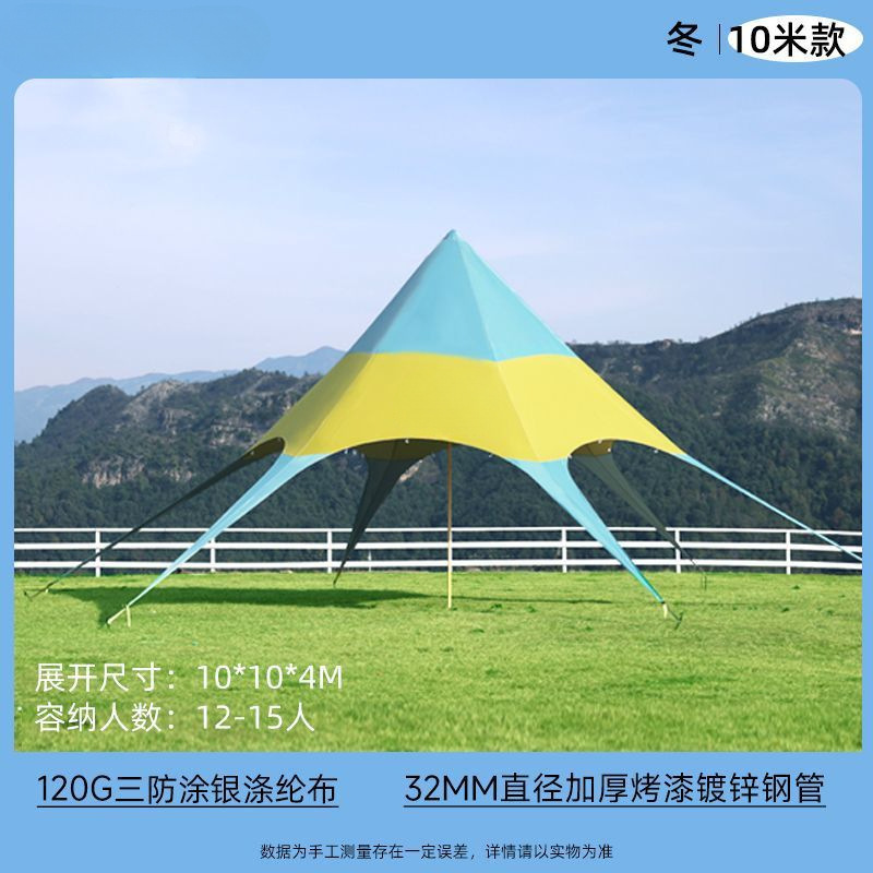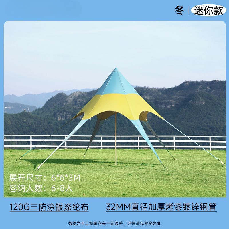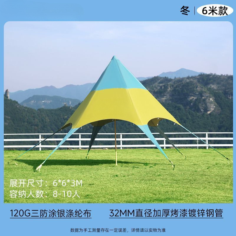 야외 캐노피 육각형 무지개 텐트 인터넷 연예인 천막 캠프 가을 여행 태양 보호 단일 피크 야외 삼각형 스타 천막