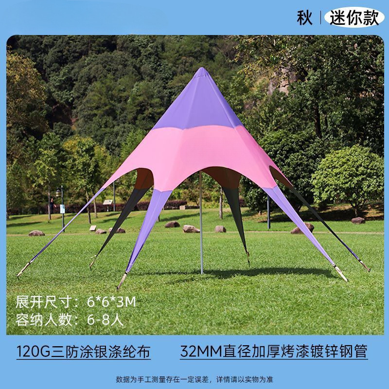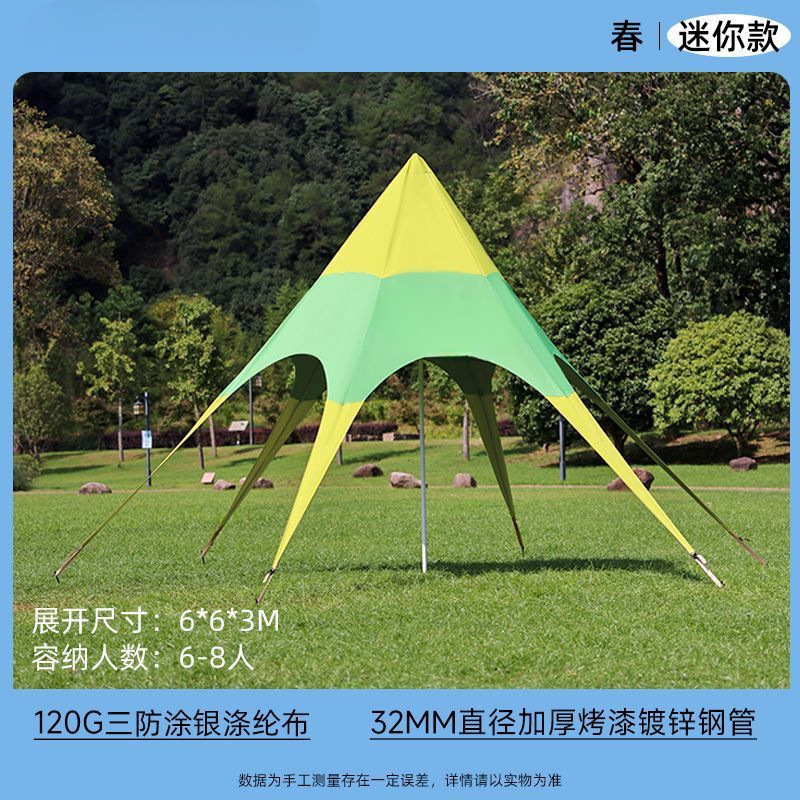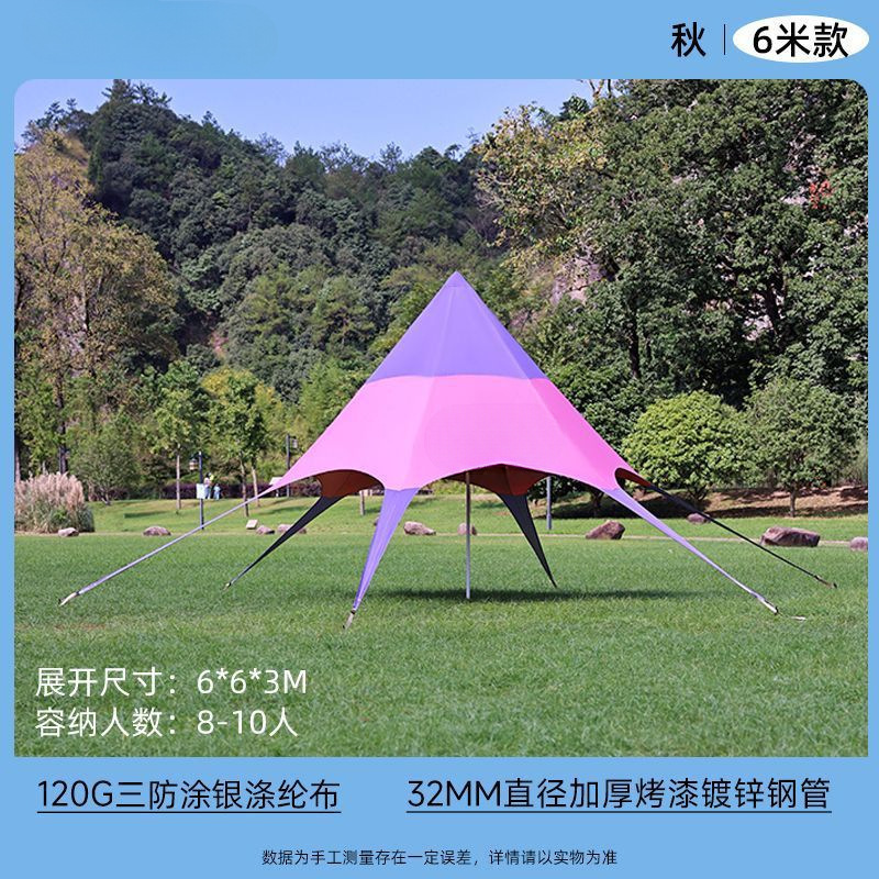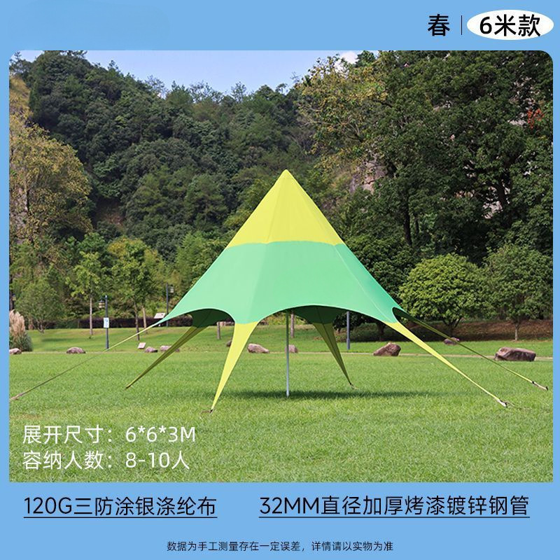 야외 캐노피 육각형 무지개 텐트 인터넷 연예인 천막 캠프 가을 여행 태양 보호 단일 피크 야외 삼각형 스타 천막스토어 가기