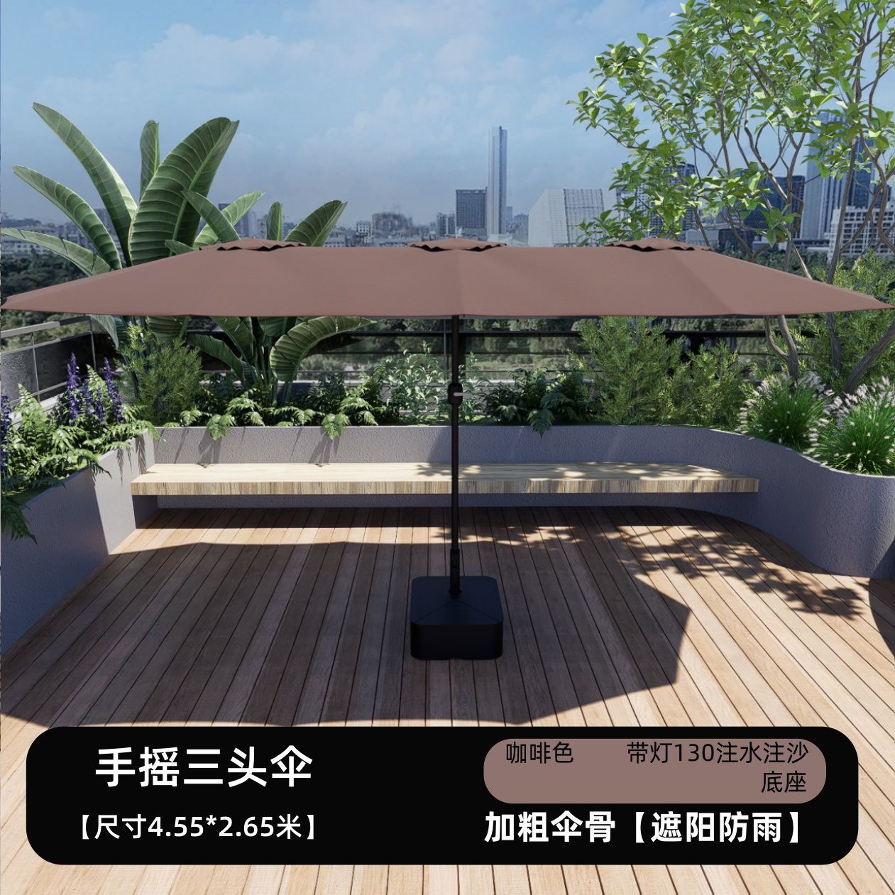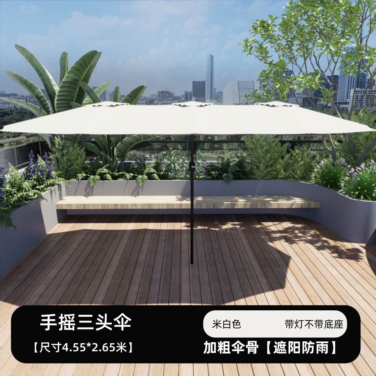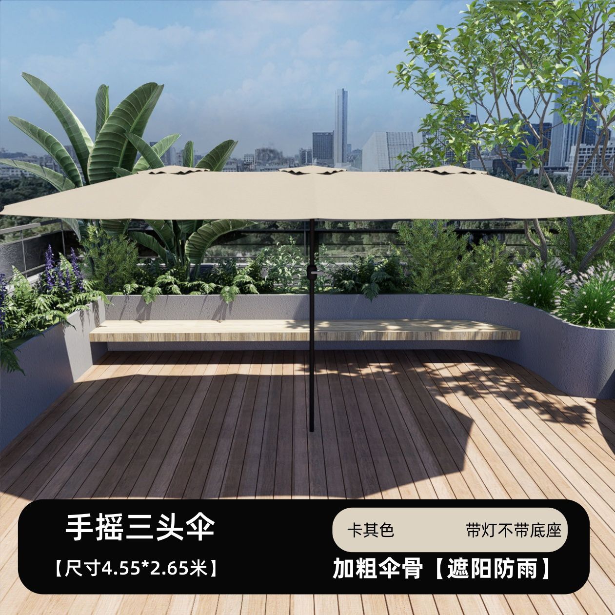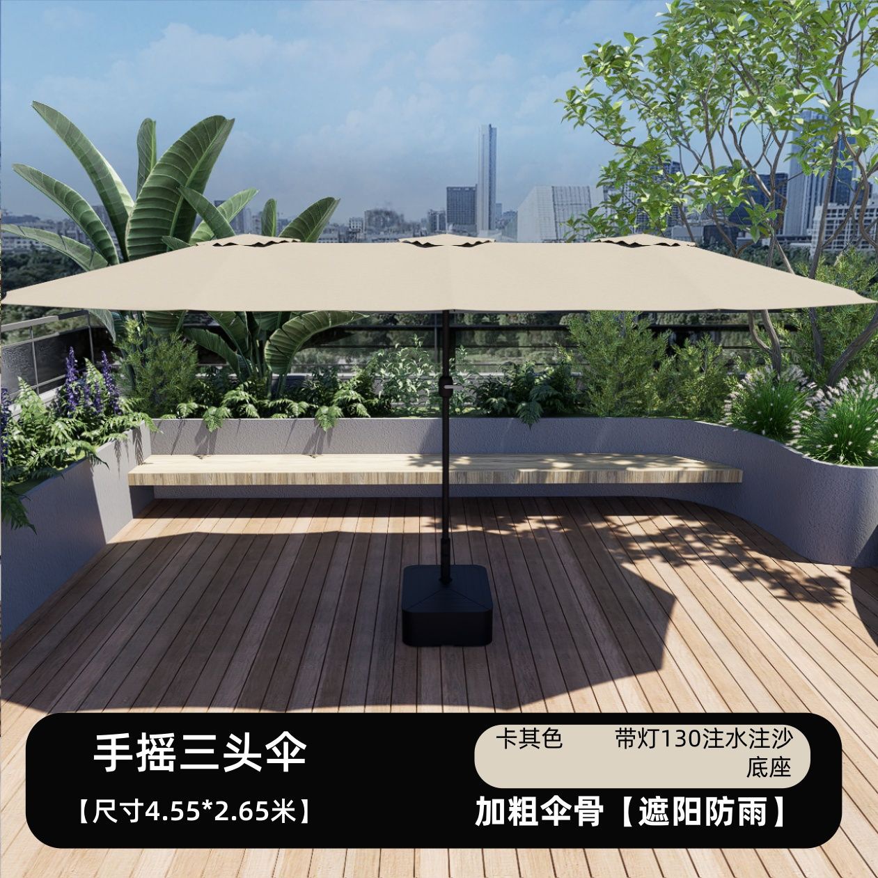 야외 파라솔, 안뜰 우산, 3헤드 우산, 야외 태양광 발전, 조명이 있는 두꺼운 레이어 해변용 우산