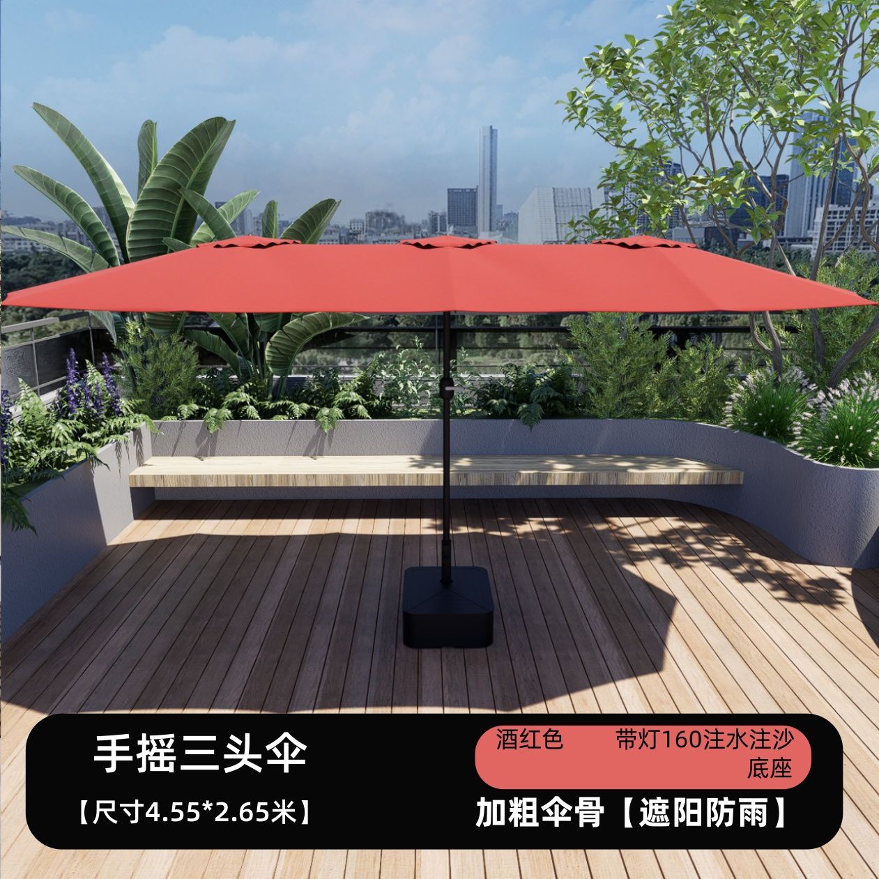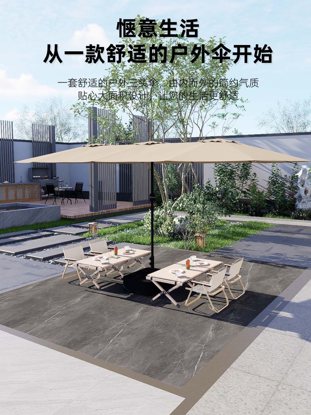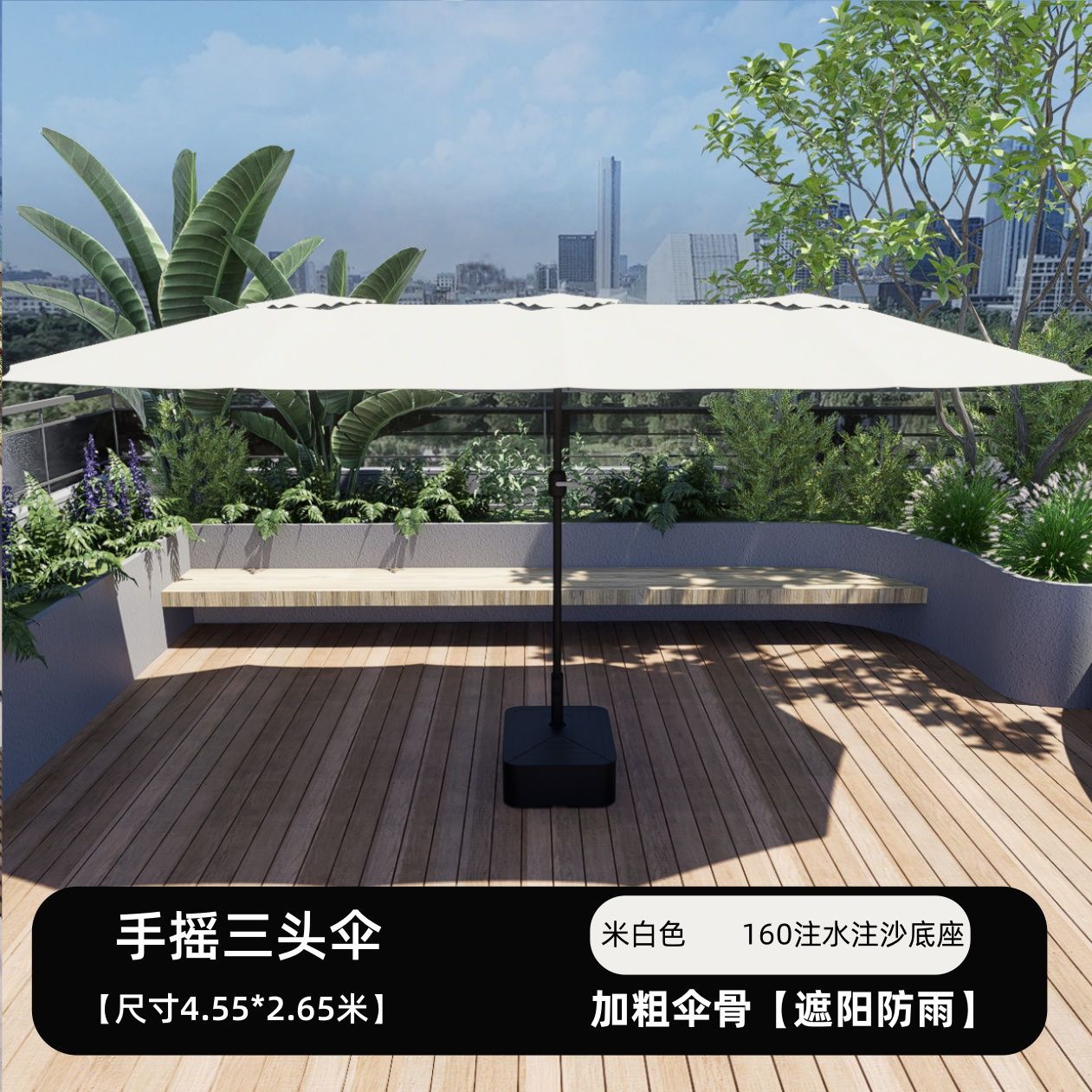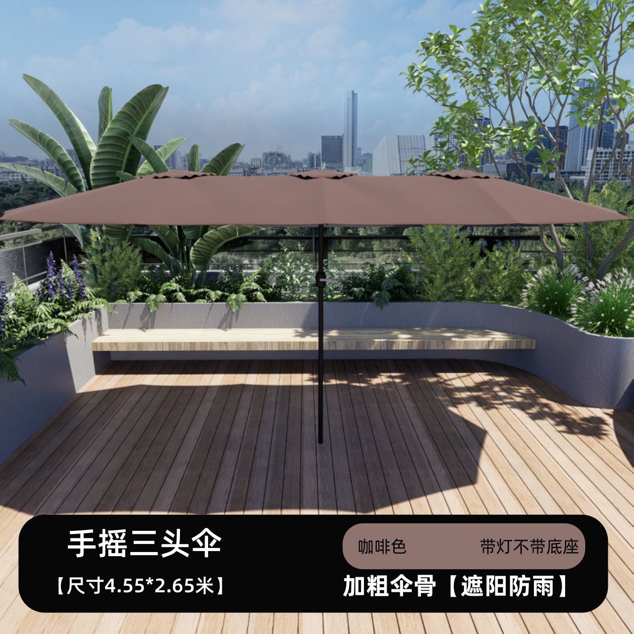야외 파라솔, 안뜰 우산, 3헤드 우산, 야외 태양광 발전, 조명이 있는 두꺼운 레이어 해변용 우산