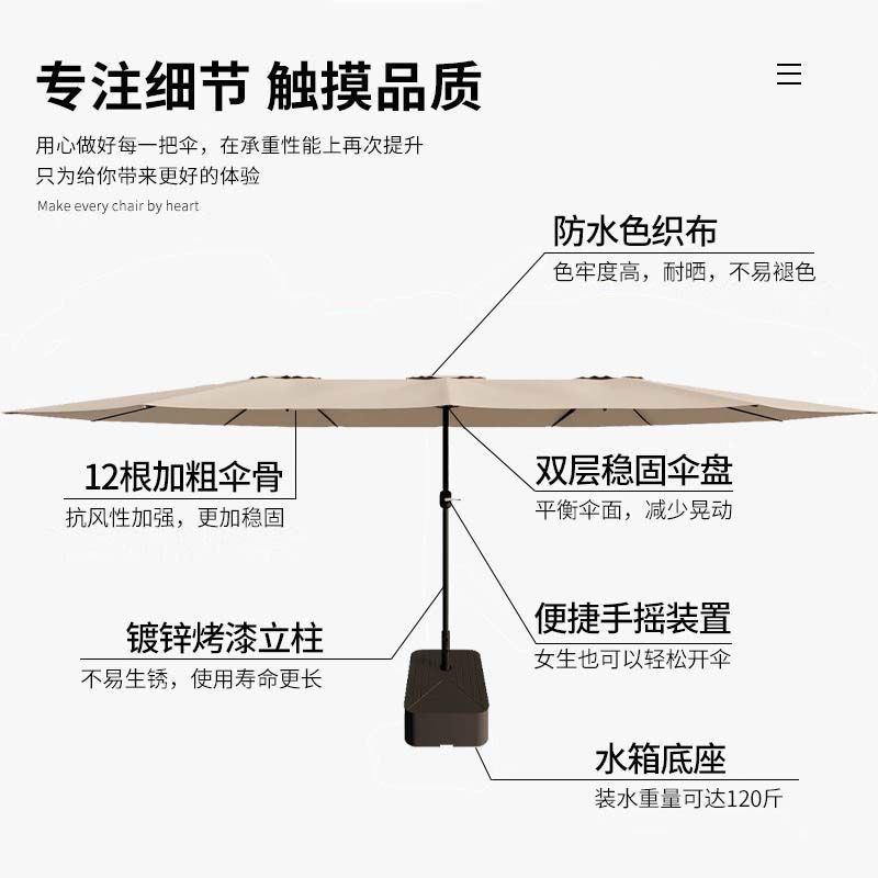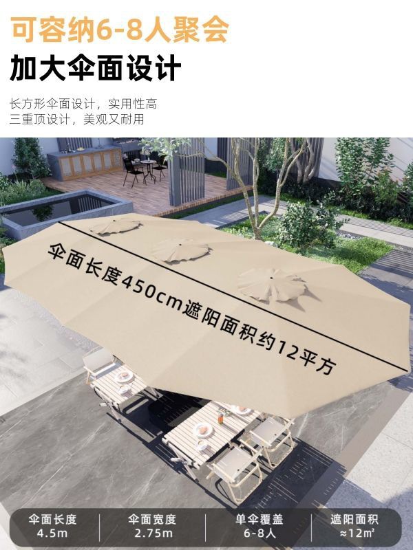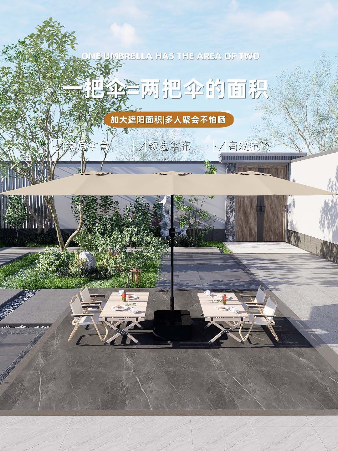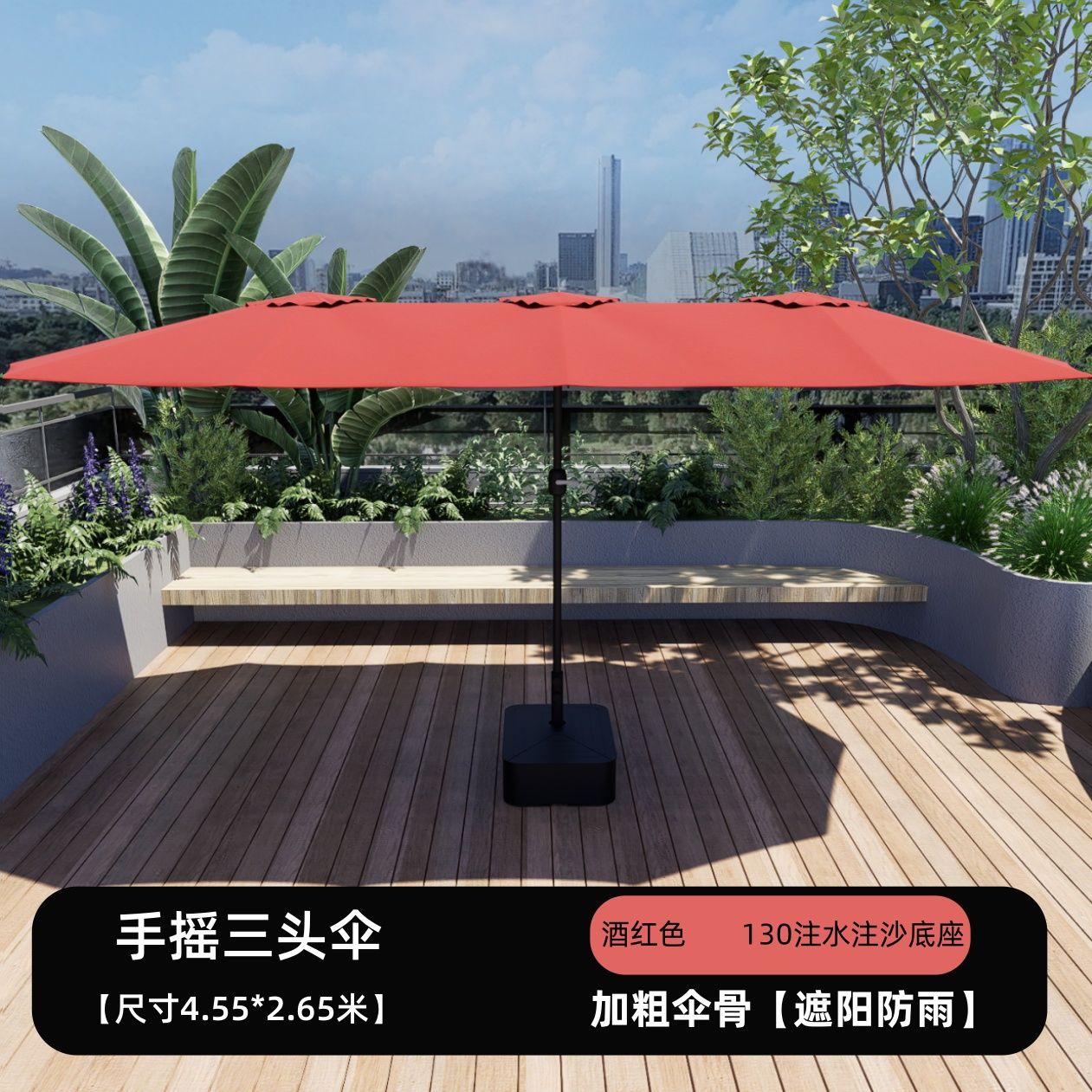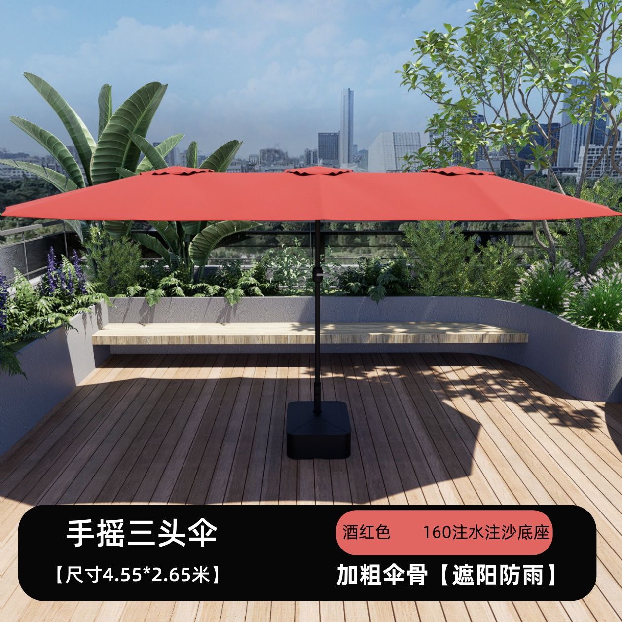 야외 파라솔, 안뜰 우산, 3헤드 우산, 야외 태양광 발전, 조명이 있는 두꺼운 레이어 해변용 우산