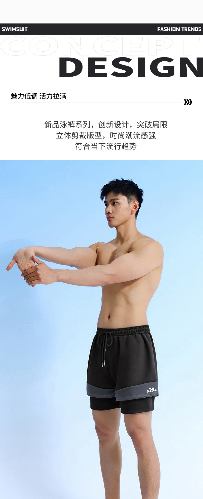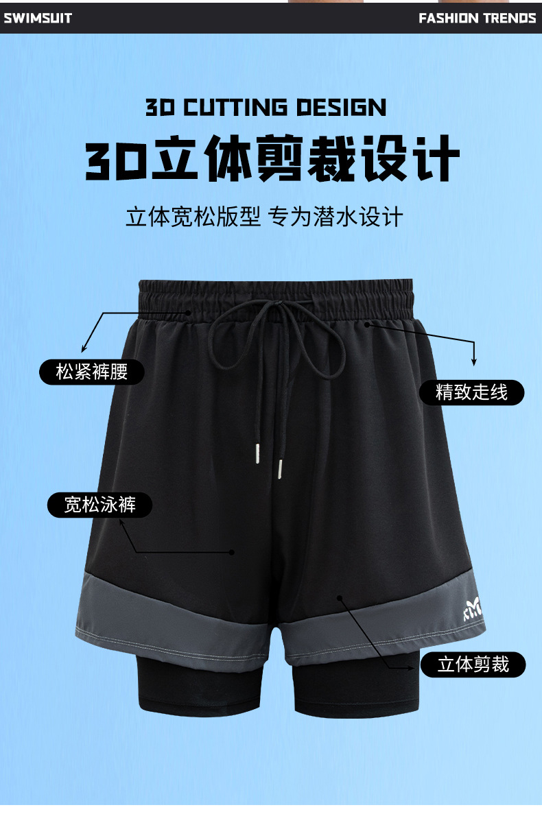 남성용 수영복, 당황스러운 방지, 더블 레이어, 루즈, 속건성, 대형 사각 수영복, 전문 온천 수영 장비 세트