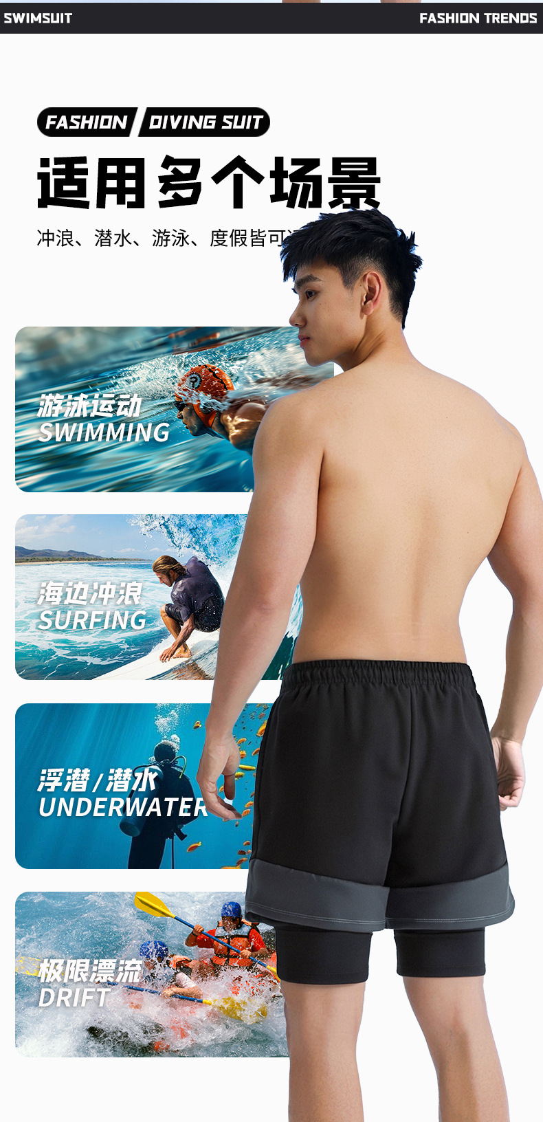 남성용 수영복, 당황스러운 방지, 더블 레이어, 루즈, 속건성, 대형 사각 수영복, 전문 온천 수영 장비 세트스토어 가기