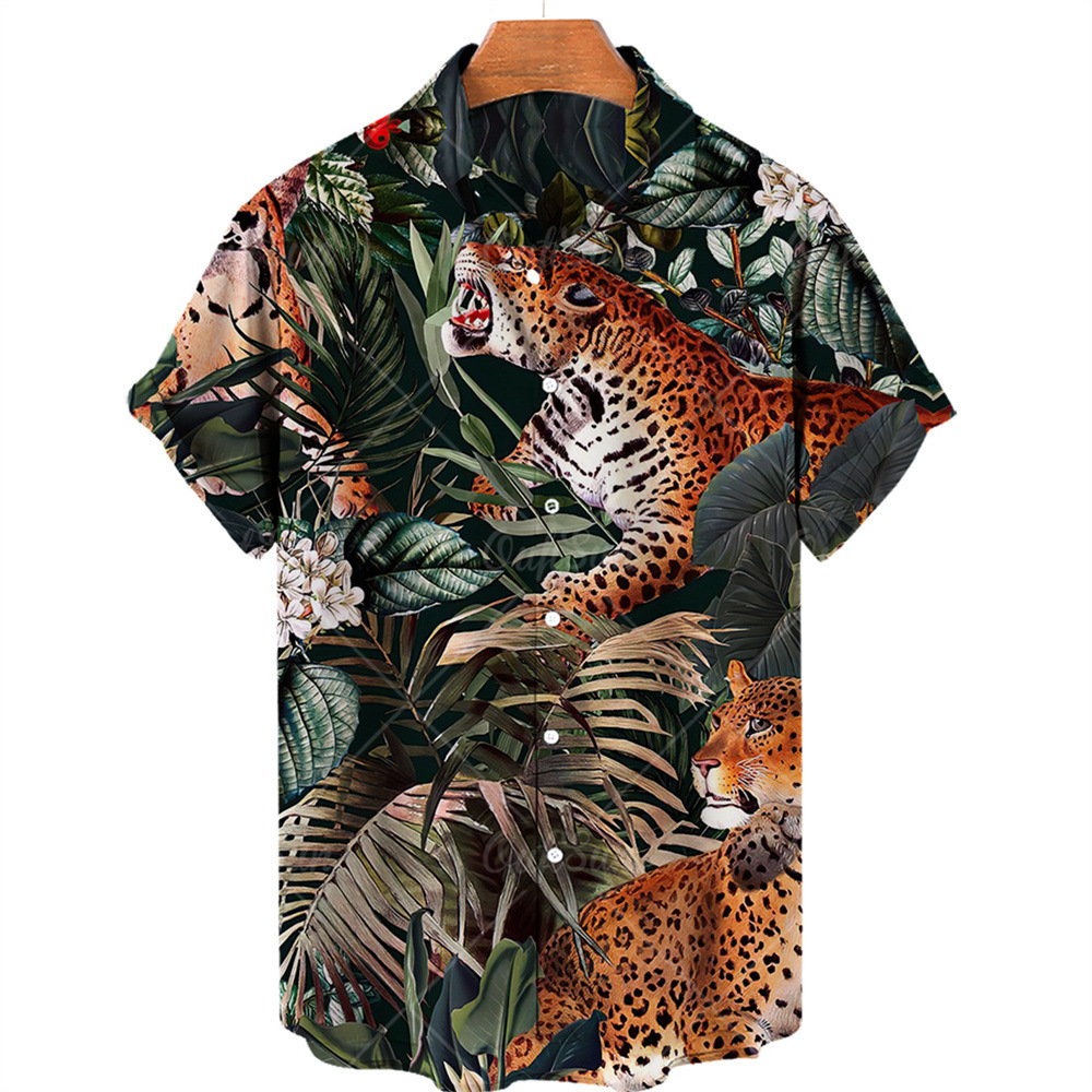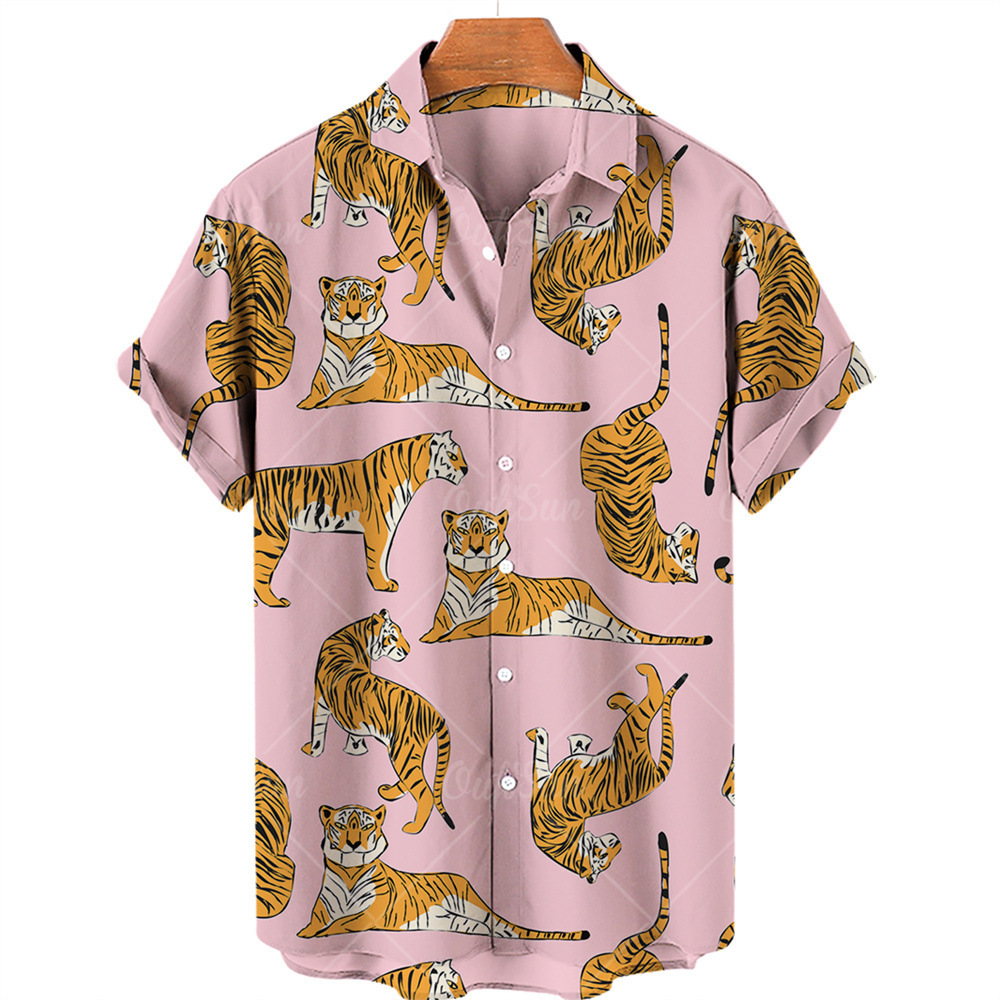 2025 여름 아마존 새로운 사나운 호랑이 3D 디지털 인쇄 반팔 셔츠 남성 셔츠