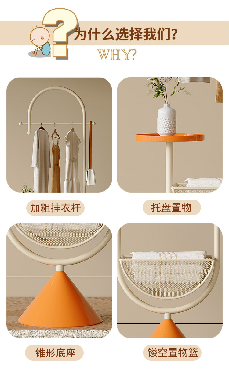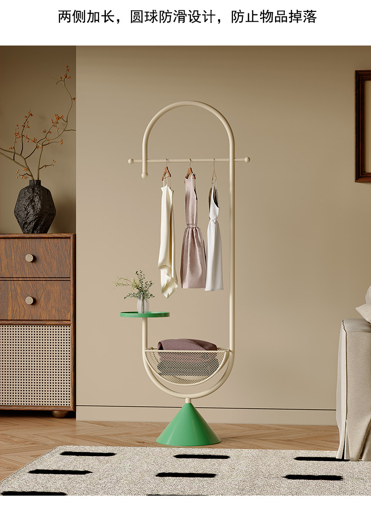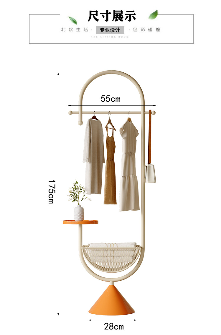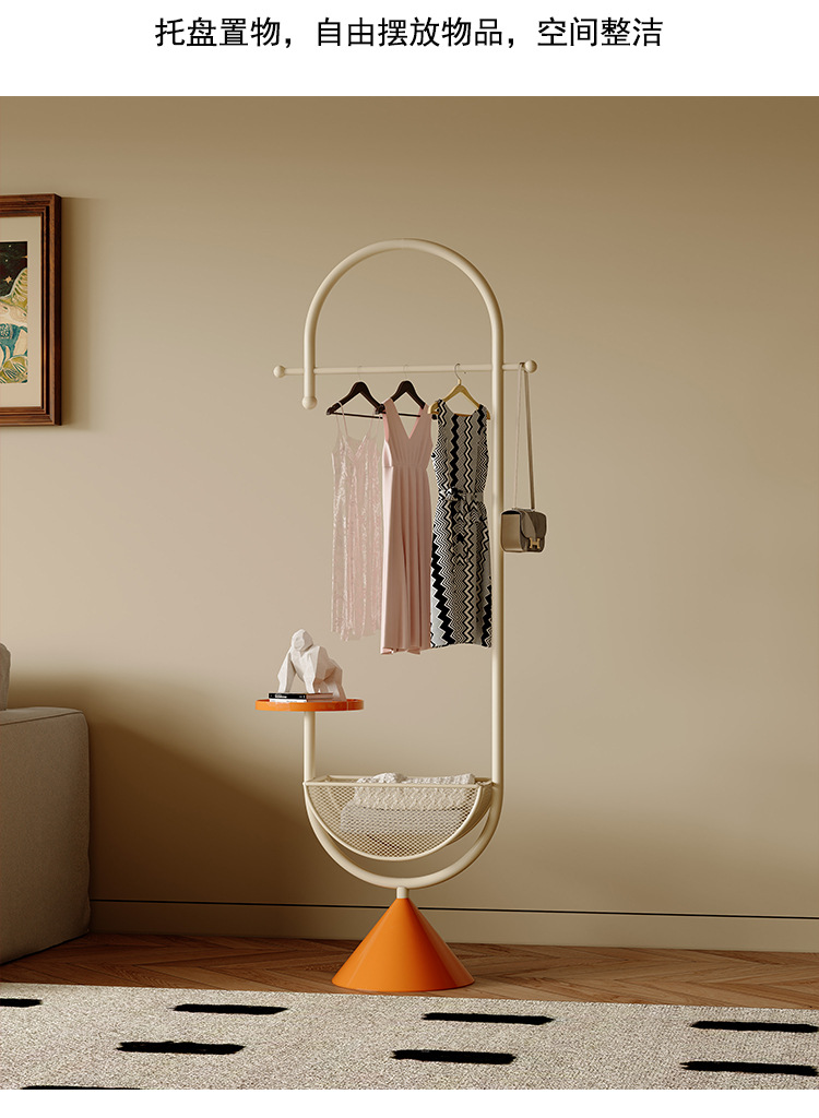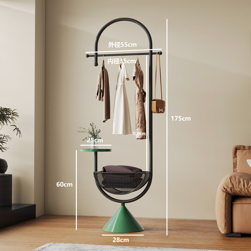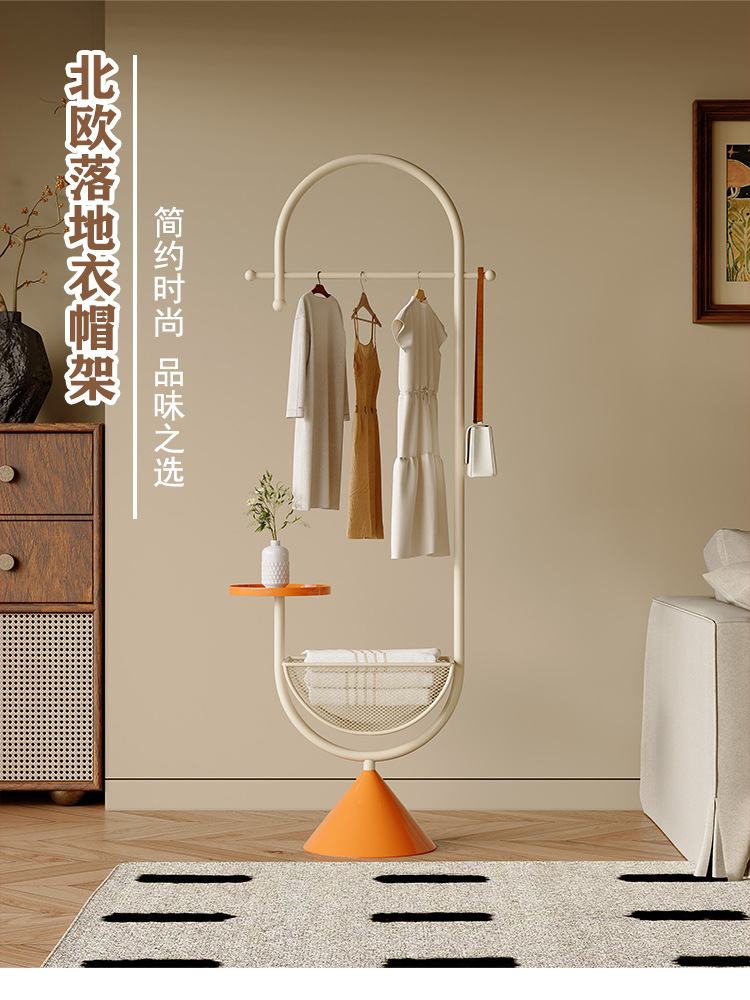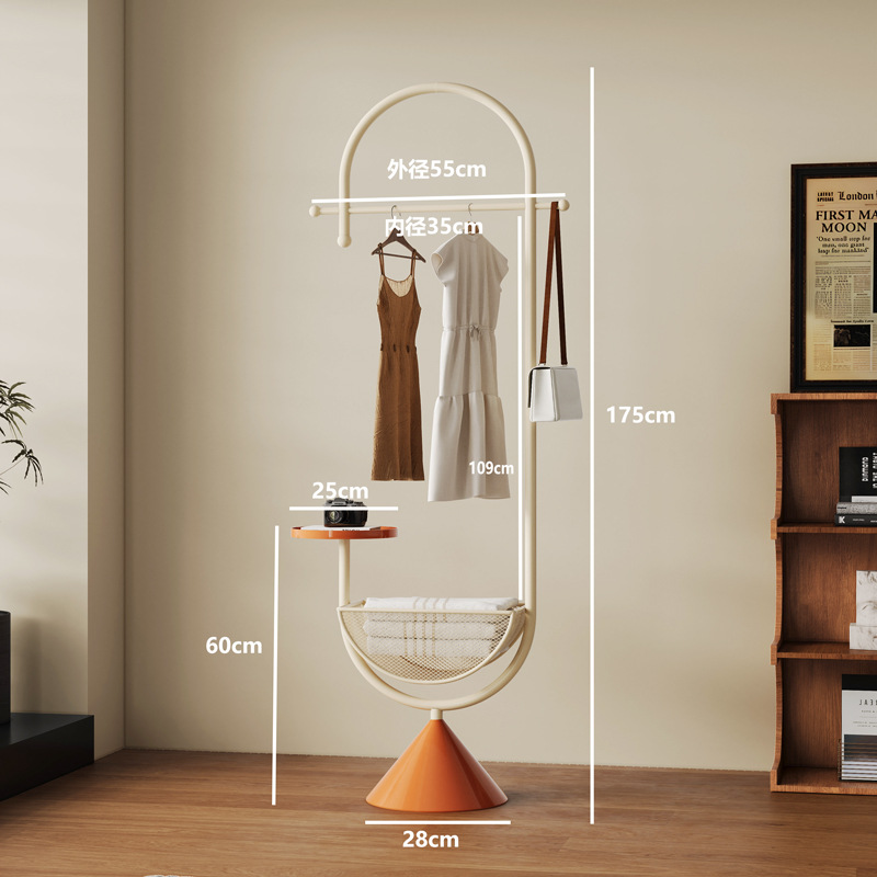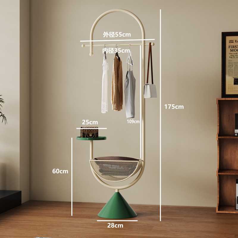크림 스타일 거실 다기능 코트 랙 입구 바닥 스탠딩 옷걸이 침실 더러운 옷 바구니 옷걸이가있는 창의적인 스토리지스토어 가기