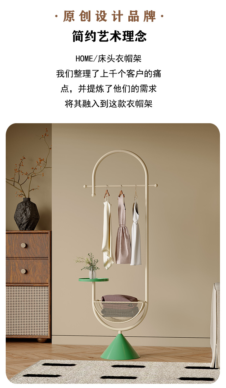 크림 스타일 거실 다기능 코트 랙 입구 바닥 스탠딩 옷걸이 침실 더러운 옷 바구니 옷걸이가있는 창의적인 스토리지