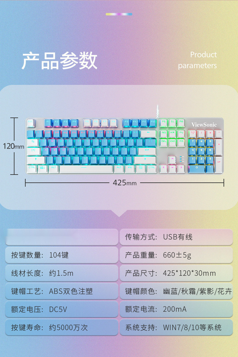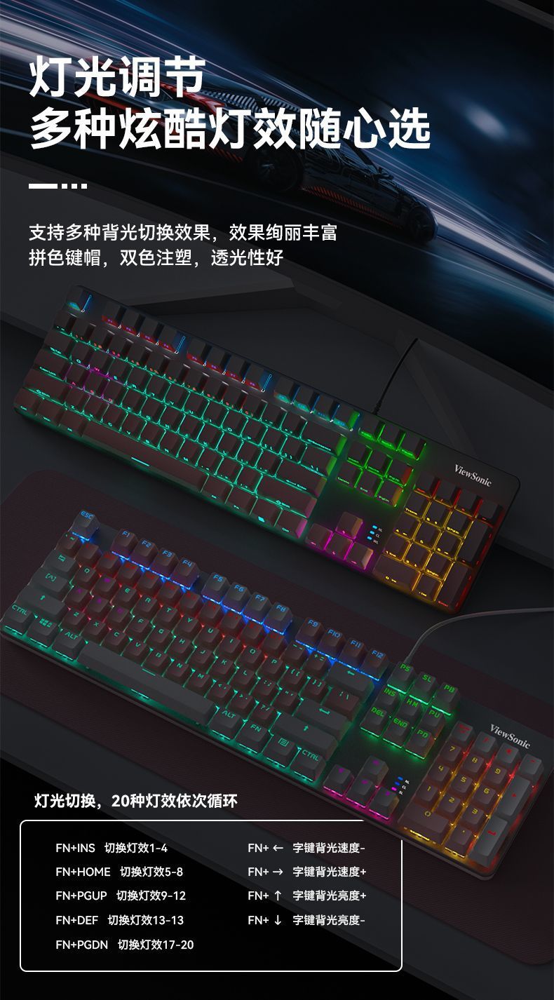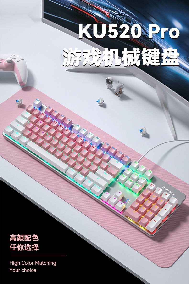 유선 기계식 키보드 e-스포츠 게임 배색 발광 녹색 축 검정색 축 데스크탑 오피스 노트북스토어 가기