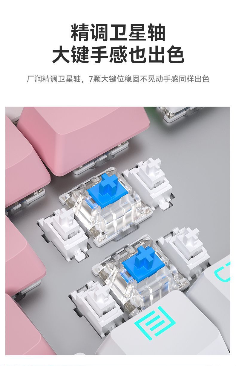 • 파란색과 흰색 혼합 조명 - Youlan 한정판 + 6버튼 매크로 마우스 - 검정색 축
