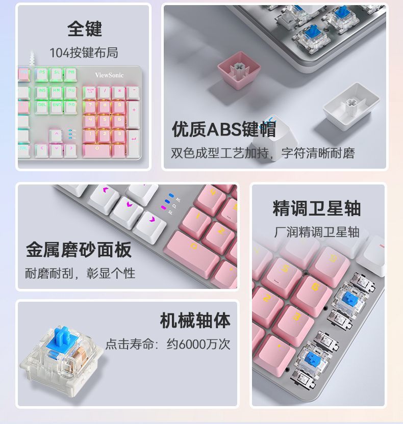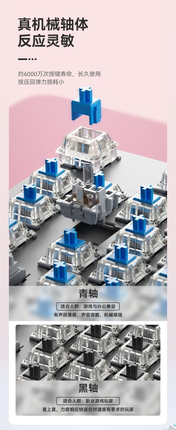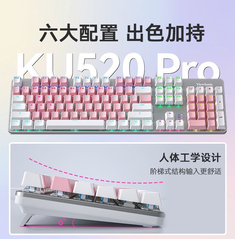 • 핑크와 화이트 혼합 라이트 플라워 한정판 + 6버튼 매크로 마우스 - 블랙 샤프트