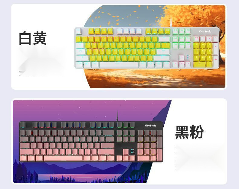 • 노란색과 흰색 혼합 조명 - 가을 서리 한정판 + 6버튼 매크로 마우스 - 녹색 축